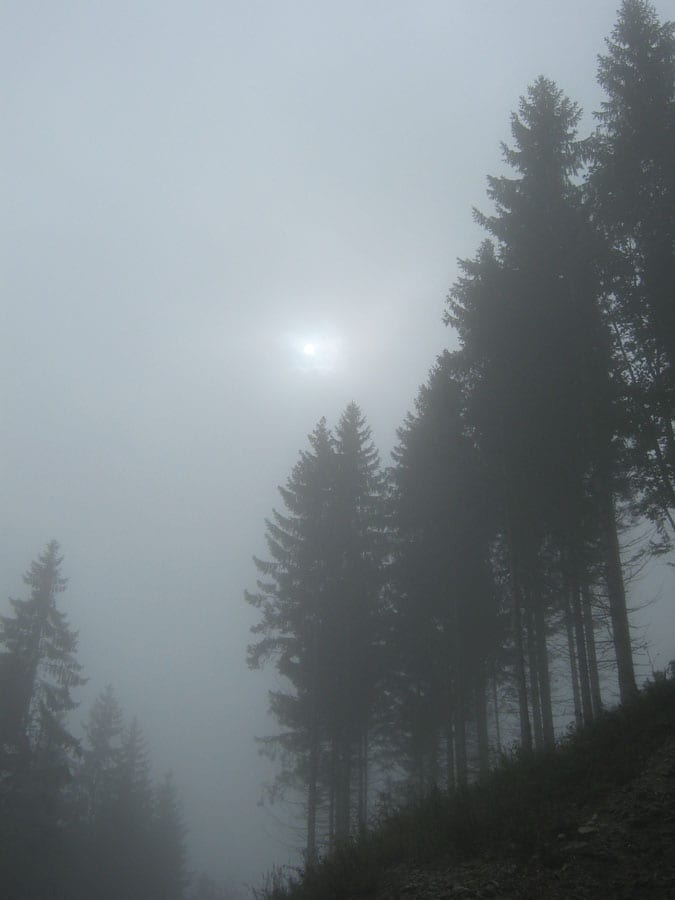 Und das Wetter: am Vormittag Nebel. weiter oben Wolken. Erst auf den Rückweg haben wir ein paar Sonnenstrahlen gesehen.