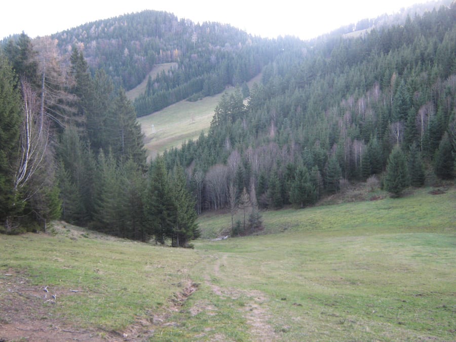Von der Viehtaleralm (840m) aus nehmen wir die Forststraße Richtung Bodenwies. Die Abzweigung dorthin nehmen wir aber nicht sondern bleiben auf der Forststraße. Unterhalb vom Hochzöbel kommen wir immer weiter hinauf, bis der Weh auf ca. 1.180m endet.