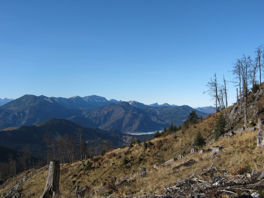 Das Reiflingeck (genau wie der Ochsenkogel auch) liegt zwischen Hochzöbel und Almkogel. Von der Almkogelseite aus kommt man nicht hin, weil ist muss man klettern; und über den Hochzöbel ist es für die kurzen Tage eine zu lange Strecke.