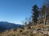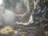 Aber ich bin ja nicht so. Wieder bergauf. Das geht ja noch, aber auf welchem Weg? Denn wir haben ja heute auf Markierungen verzichtet. Um es kurz zu machen: ICH hab ihn gefunden! S’Herrl wollte einen anderen Weg gehen, aber ich hab mich einfach neben den Fotoapparat gesetzt (Beweisfoto unten!).