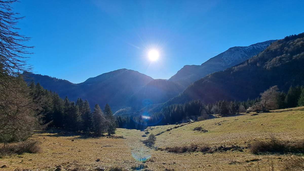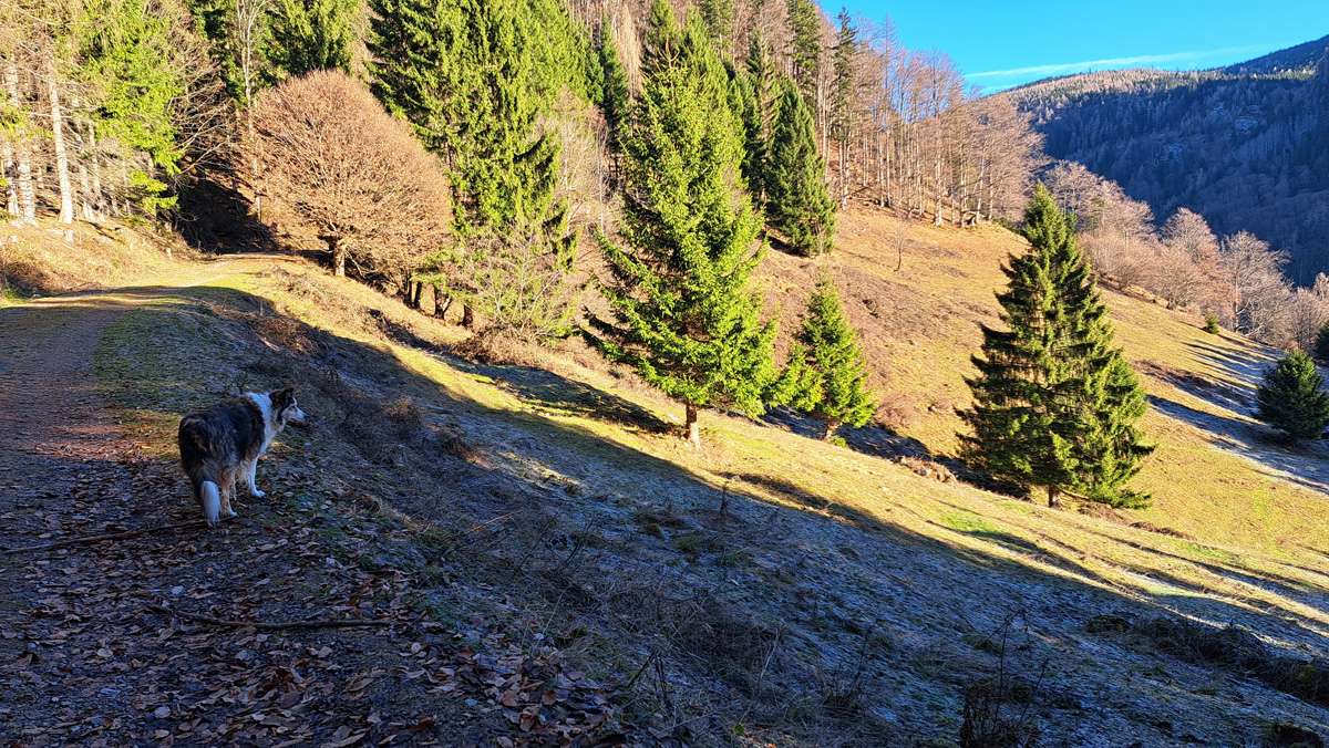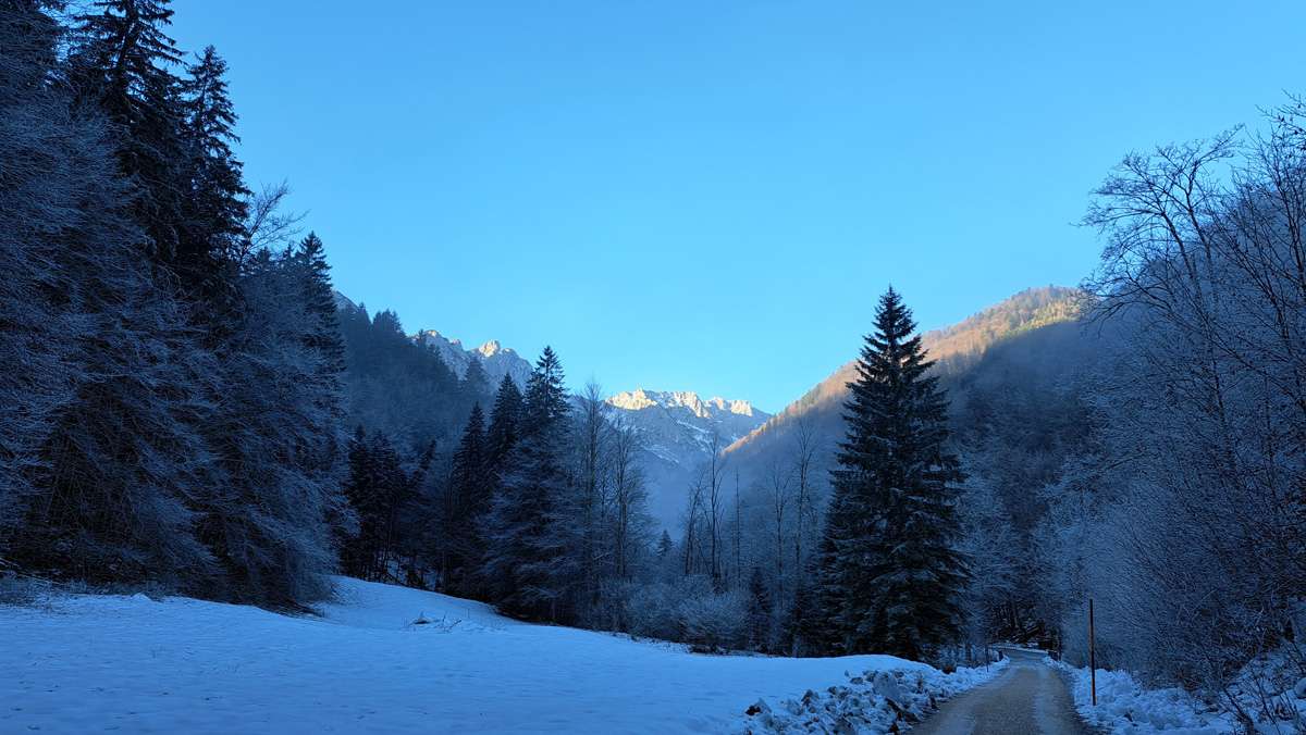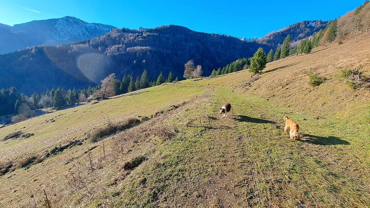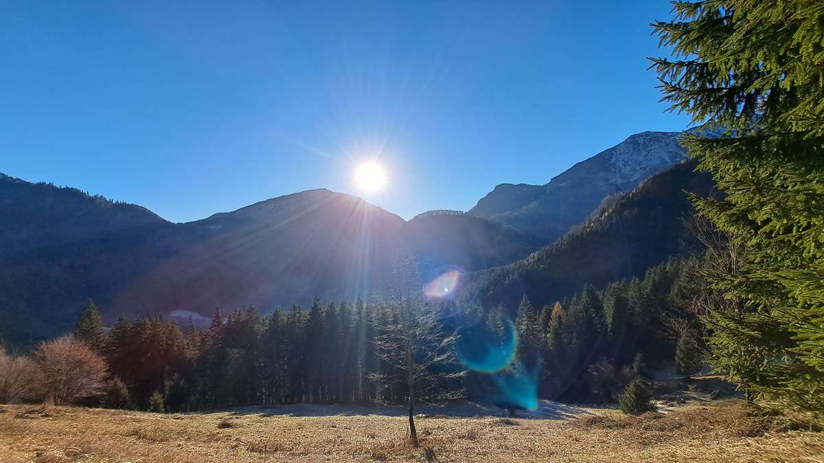Zuerst ist es sehr, sehr kalt; das ändert sich aber ein Stück den Berg hinauf und endlich sind wir in schönem Wetter – deshalb heißt die Zaglbaueralm heute für uns „Sonnenalm“; wegen der Sonne :-). Für die, die im Tal geblieben sind: Sonne, das ist das runde gelbe Ding im Himmel.