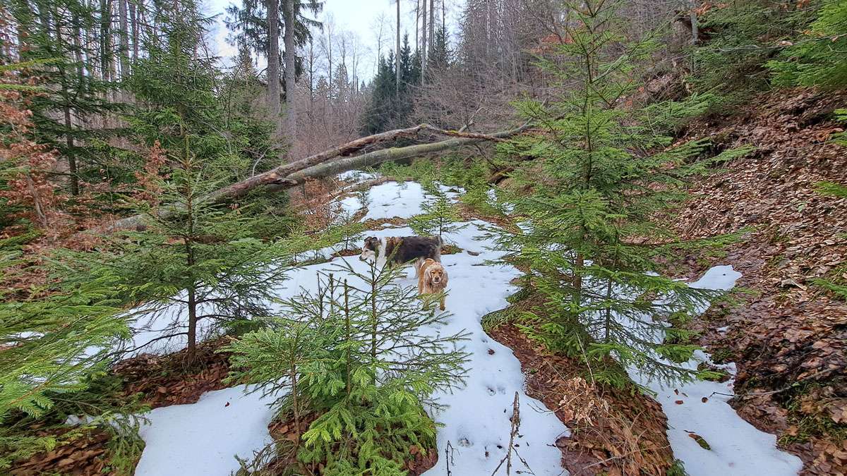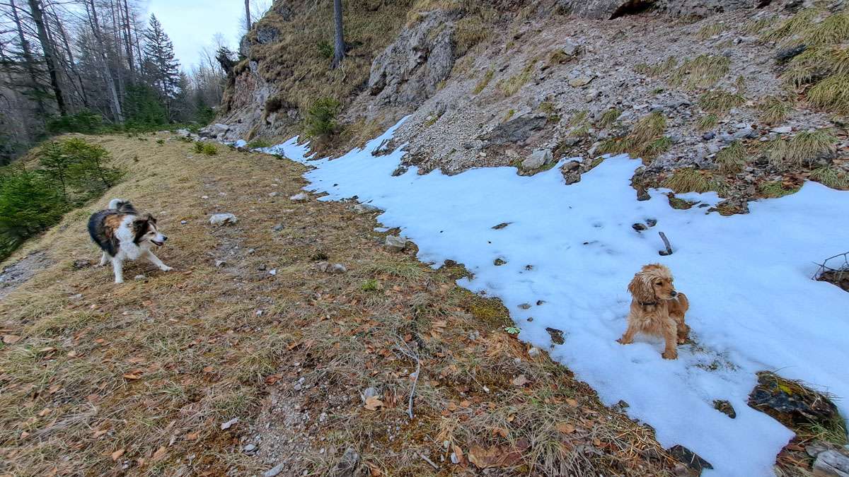 Auf den Bildern sieht man noch recht viel Schnee. Der liegt aber nur noch an wenigen Stellen herum (nur s’Herrl hat halt gerade dort fotografiert., quasi als Wintererinnerung). Wenn nichts nachkommt, ist bald Platz für das erste Frühlingsgrün …