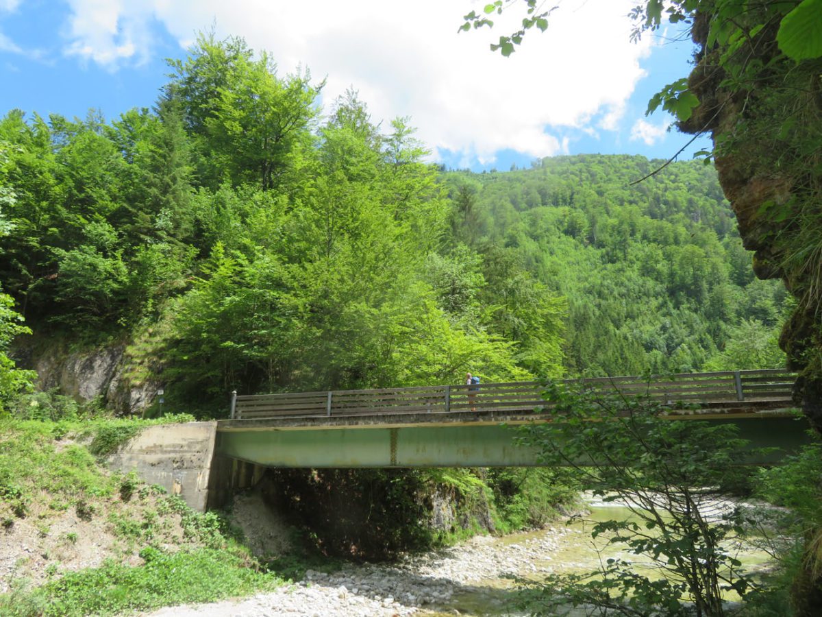 Auf dem Rückweg ist dann Pause am Haselbach: da haben wir einen Platz gefunden, an dem wir auch einen ganzen Lesen+Faulenzen-Tag verbringen könnten. Dann kommt der Annerlsteig dran, von dem es super Ausblicke hinunter zum Triftsteig und hinüber zum Hochschlacht-Weg gibt.