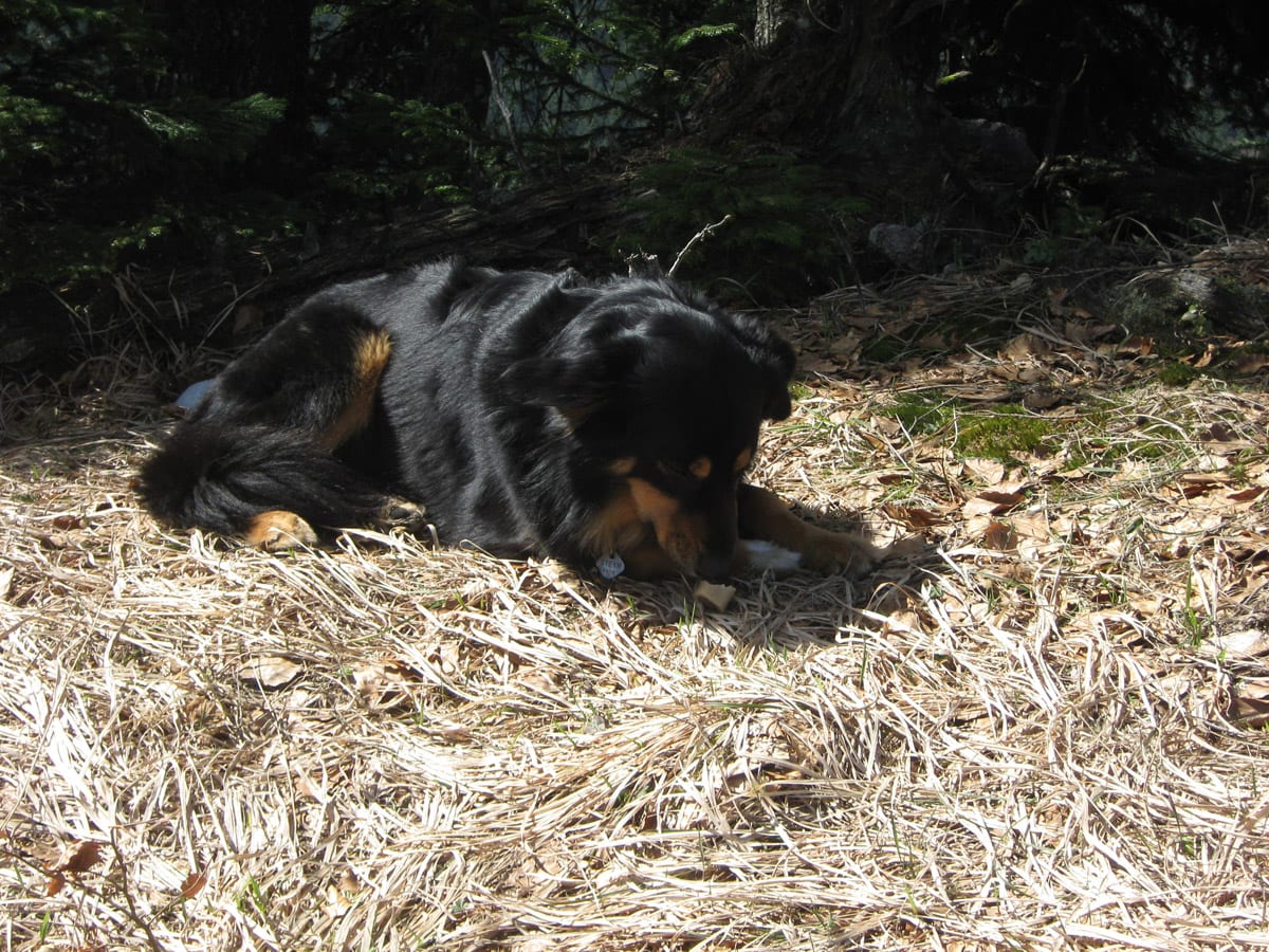 Für mich gabs den berühmten Meter Schnee – genau das Richtige bei der Hitze. s’Herrl ist beim Sonnenbad geblieben und schaut jetzt ein bisserl aus wie ein vergessenes Grillkotlett.