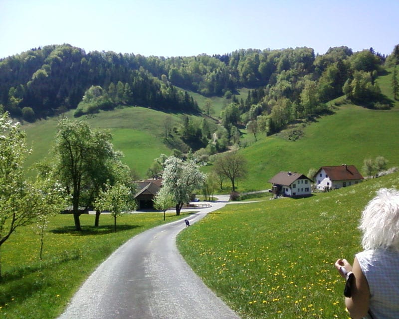 Am letzten Samstag – heiß wars – hat die Trixi dem Herrl und mir gezeigt, wo man gleich in der Nähe von Steyr kneippen kann: erst ordentlich schwitzen beim Bergauf-Bergab-Laufen über den Kneipp-Friedensweg (ja, so heisst der) und dann die Füße in eiiiiskaltes Wasser zum Abkühlen stellen.