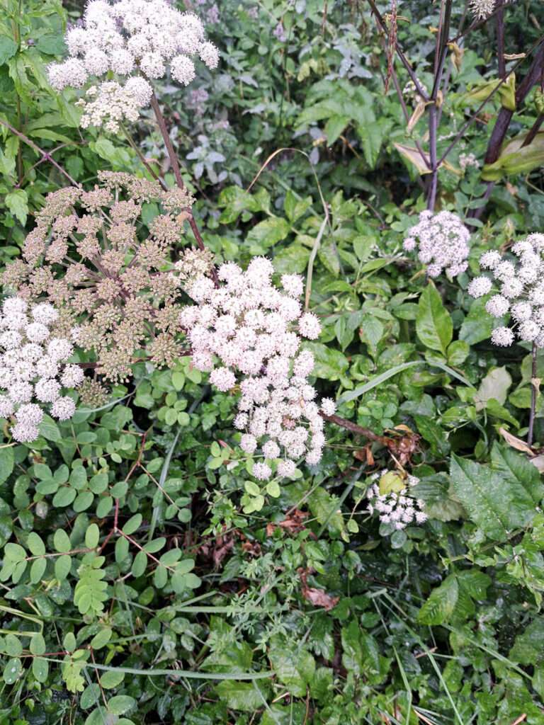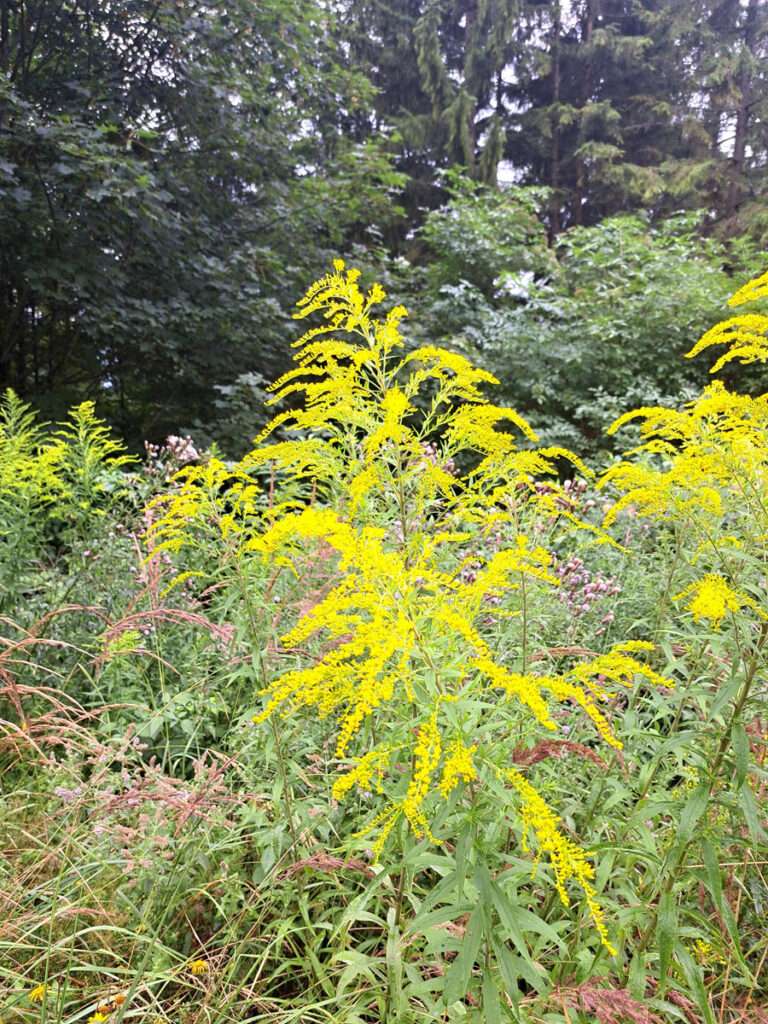 Weiter über den Hiebberg, vorbei an Parasol-Pilzen und viel blühendem Zeug erst hinunter und dann rauf auf die Lindaumauer (1.103m): Ein bisserl Ausblick lassen uns die Regenwolken.