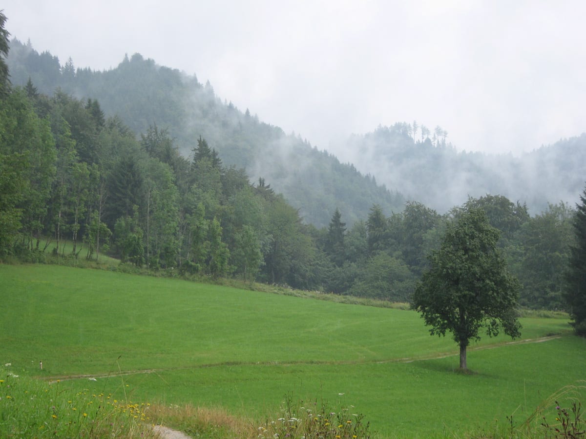 Bis zum Bilderstadel hatte es noch ordentlich geregnet, aber langsam verschwanden die Wolken und es wurde sehr, sehr angenehm – ausnahmsweise sowohl für Hund als auch für Mensch. Warm, aber nicht heiß, hin und wieder blauer Himmel und alles rundherum SEEEEHR grün! Ein Tag, ganz ohne Gipfel, aber eine Tolle Sache!