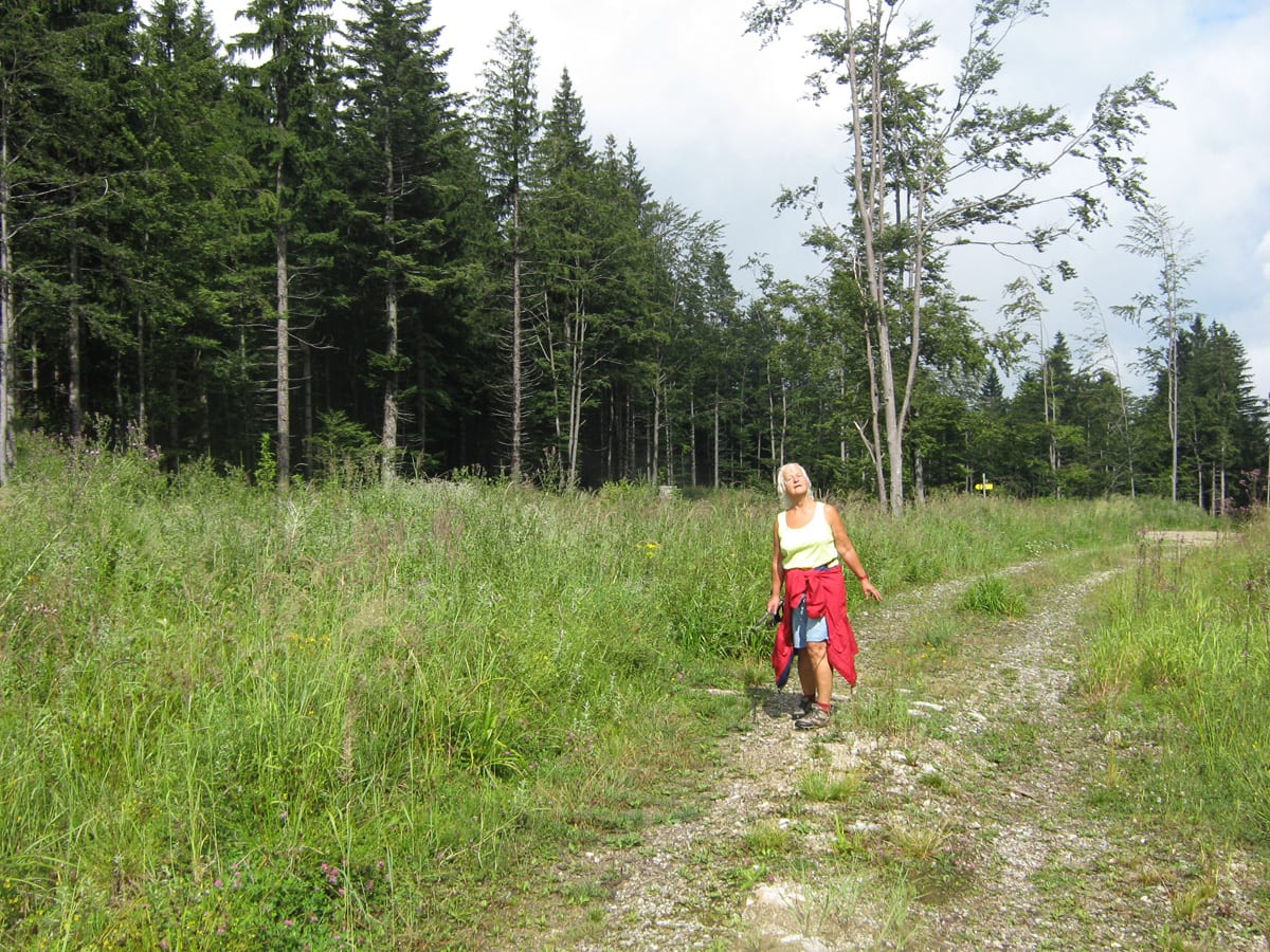 Begonnen hat der auf einem Güterweg oberhalb von Breitenau bei Molln. Da waren wir schon auf 673m Höhe und zum ersten Etappenziel, dem Bilderstadel (872m), war es nicht weit. Warum, fragt ihr euch jetzt sicher, schon wieder Bilderstadel, da waren wir doch gerade erst? Ganz einfach: weil heute wollten wir gemeinsam mit der Trixi weiter in Richtung Hohe Dirn. Und dieser Weg überschneidet sich für eine Weile mit dem Weg zum Schneeberg und zum Tannscharten.