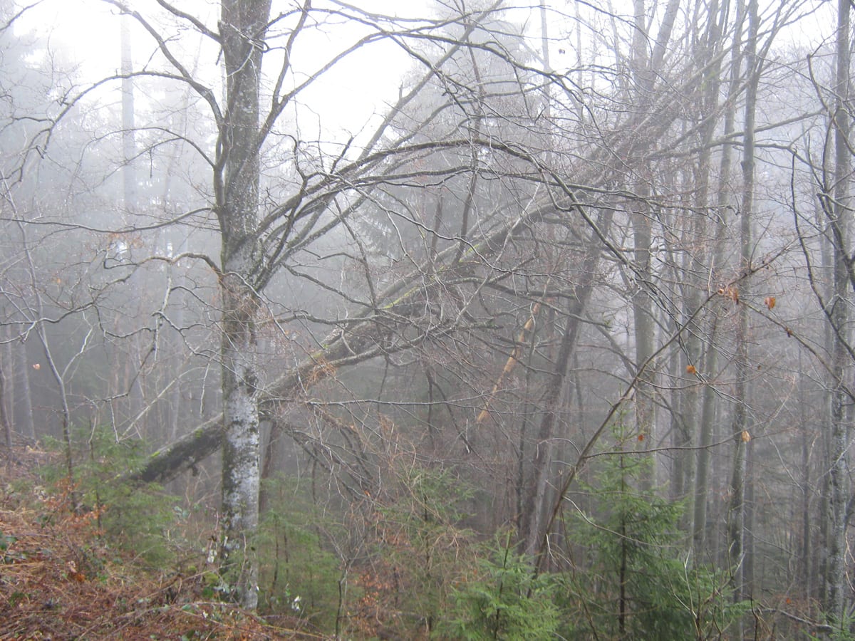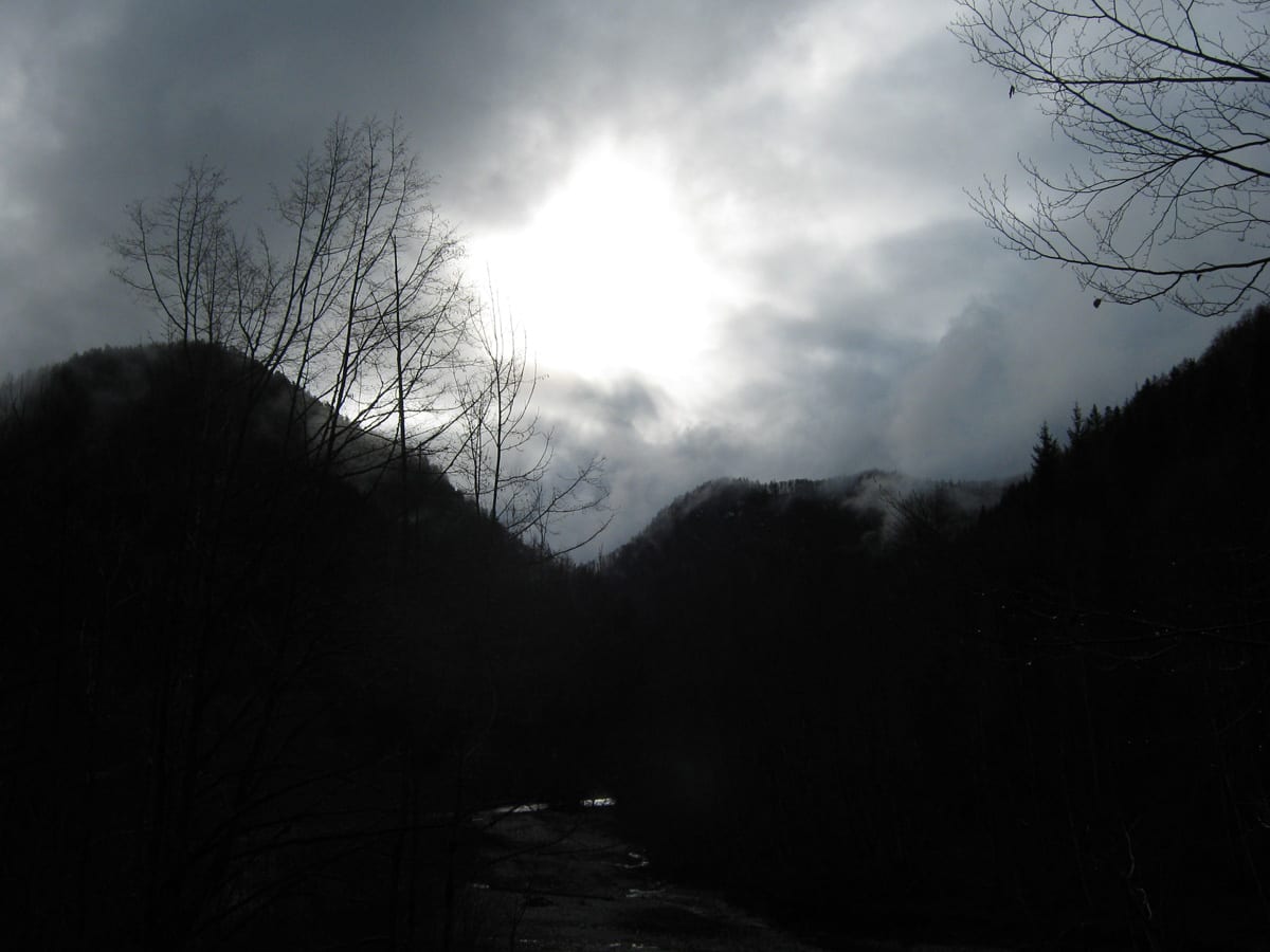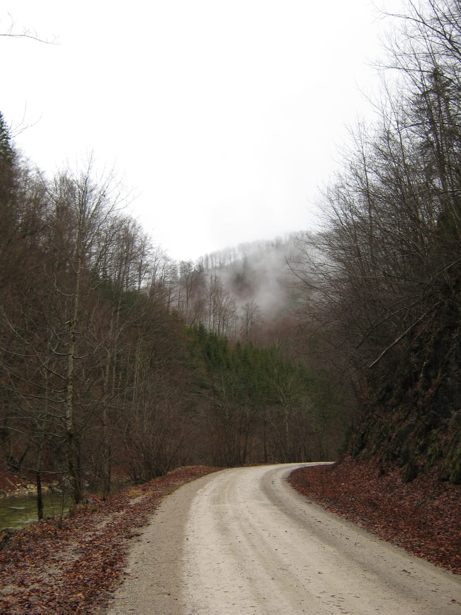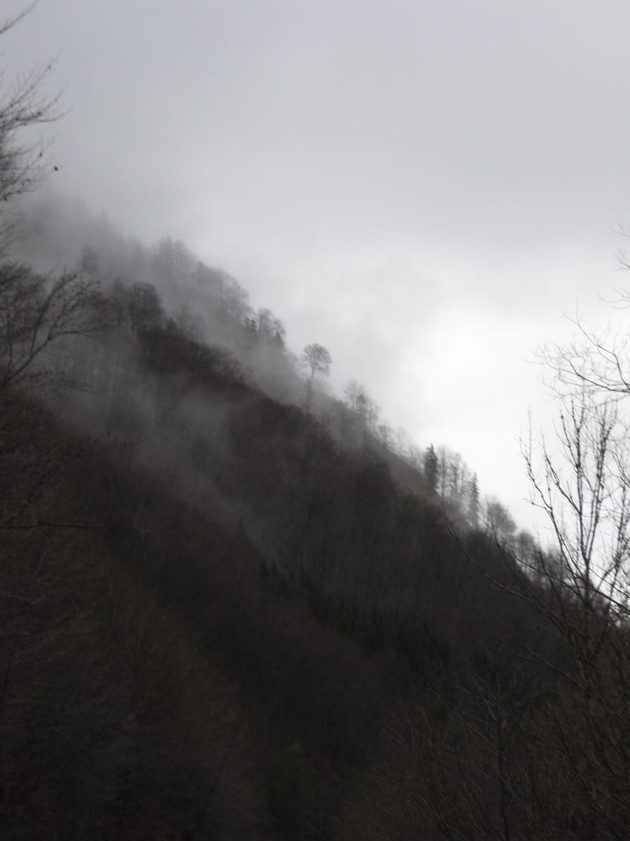 Am 27.12 um 10 Uhr in Reichraming, Anzenbachschranken: noch ein paar letzte Regentropferl, Wolken, Nebelschwaden, keine Sonne (aber laut Wetterbericht sollte es besser werden).