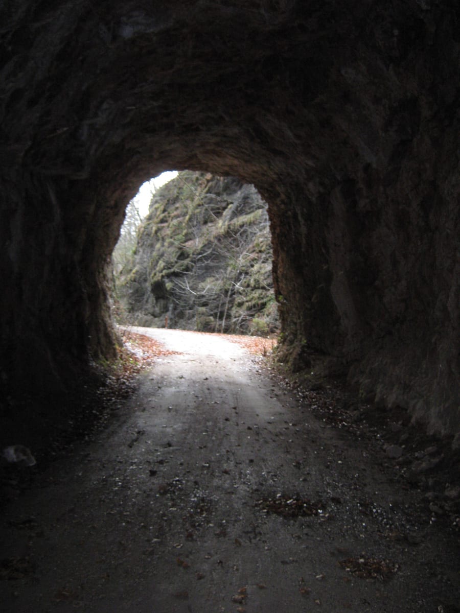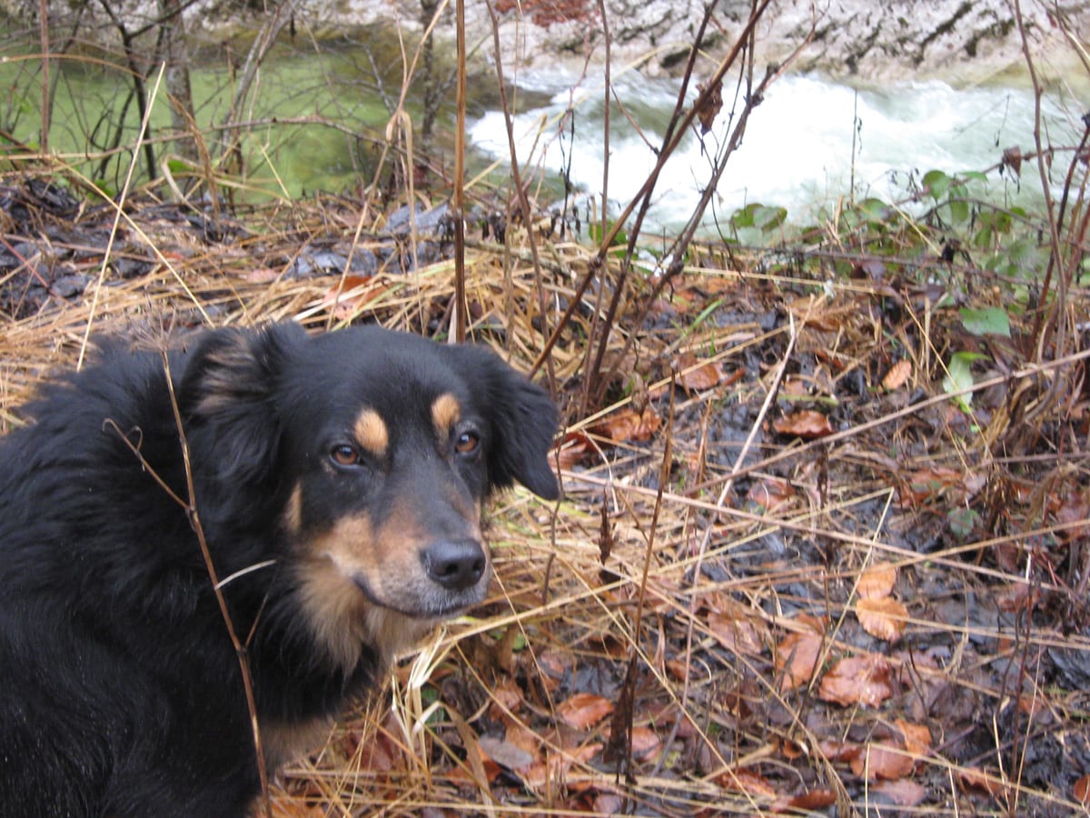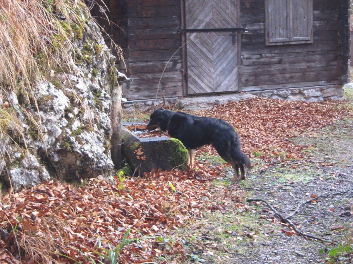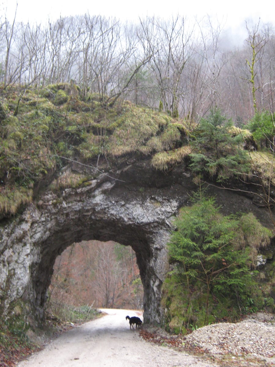 Bei der Großen Klause konnte s’Herrl gerade so ausweichen … nicht einem Felsen sondern einem Feuersalamander, der dort im einzigen Sonnenstrahl gelegen ist.