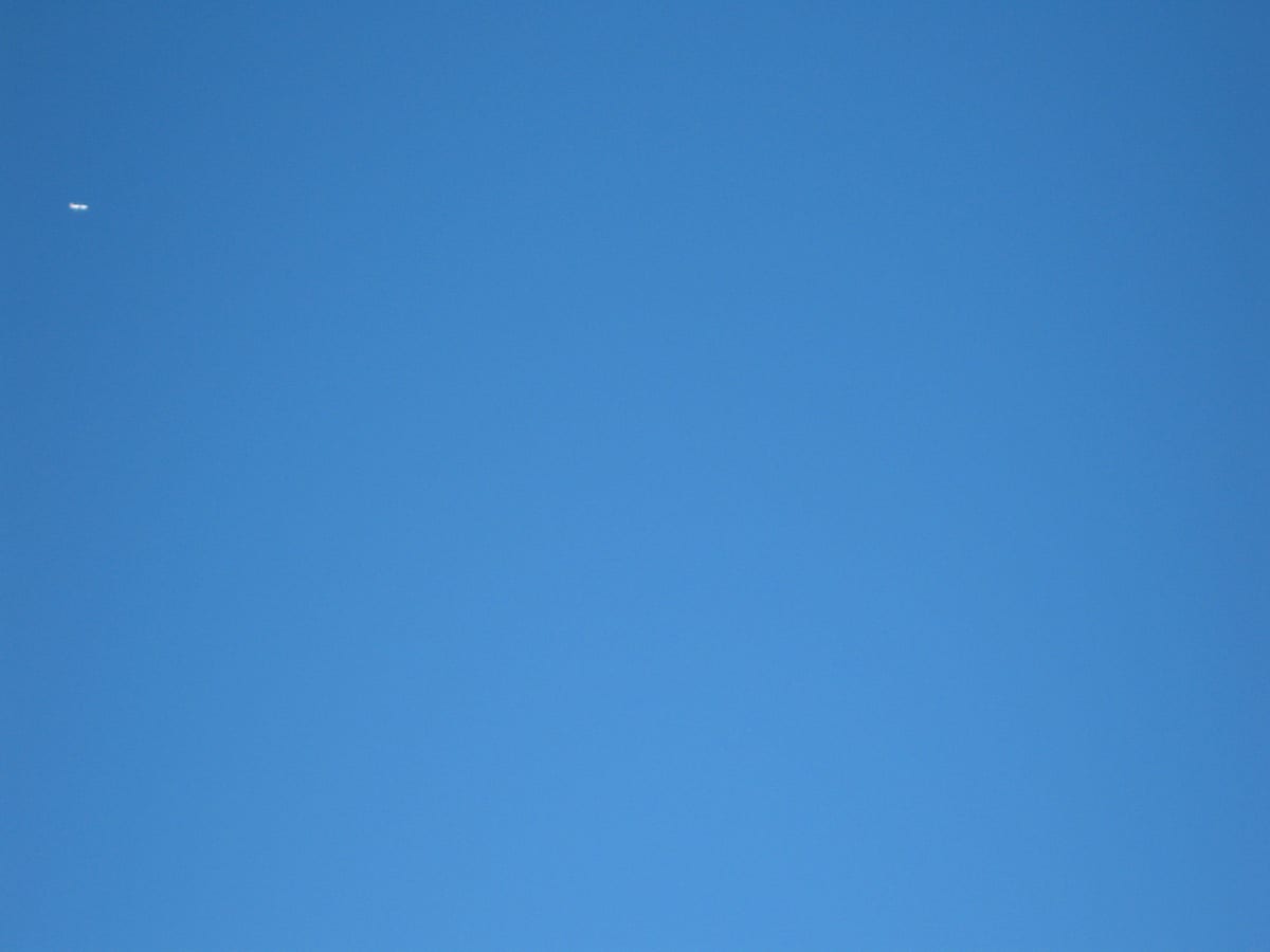 Das Foto mit viel Himmel und einem kleinen Dings drauf: das war ein Flugzeug ohne Kondensstreifen. Hat komisch ausgeschaut, wie ein UFO…