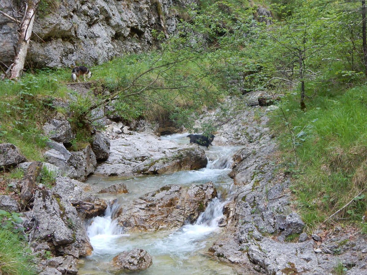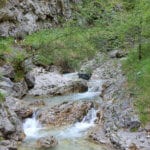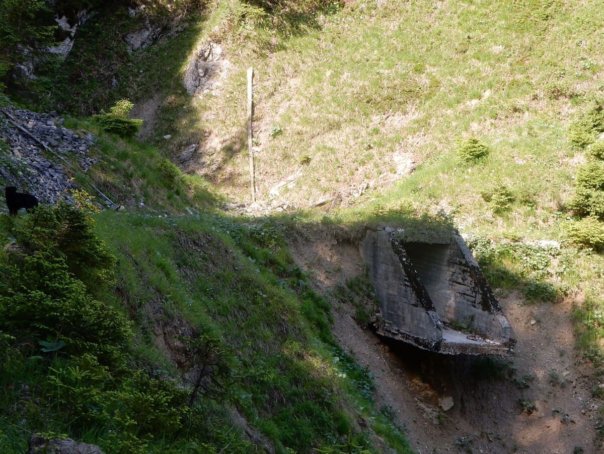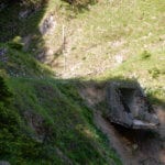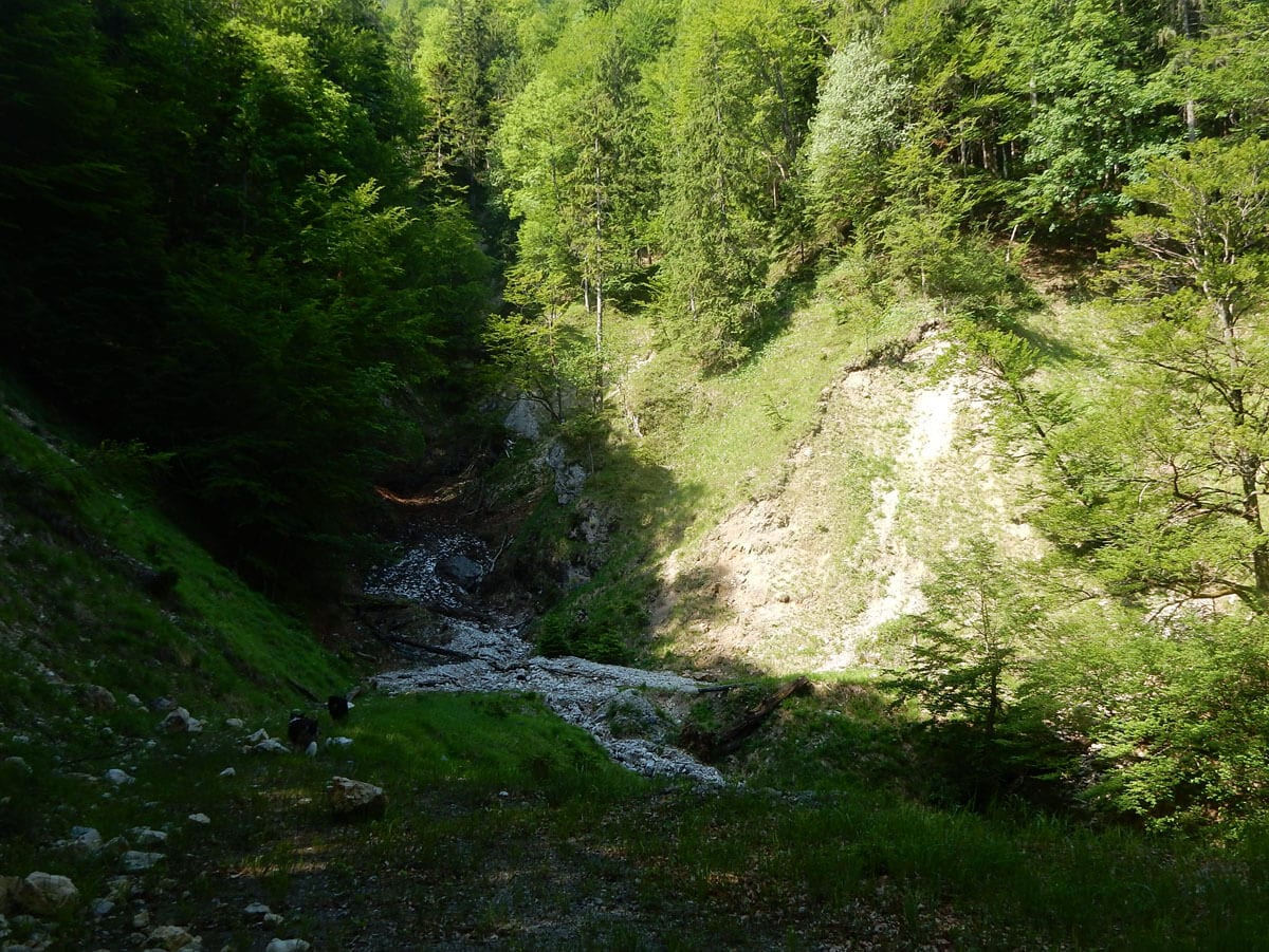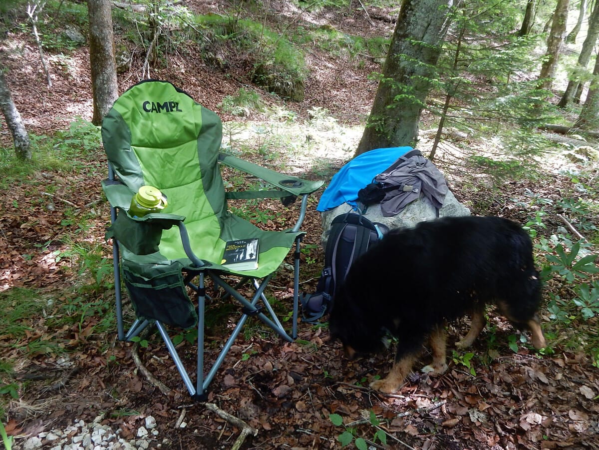 Einfach einmal bis zum Ende des Weissenbach-Grabens und dann nur verfallenen Forststraße mit den Brücken-Ruinen. Das ist für heute genug und wir müssen auch möglichst schnell zu unserem Platzerl, damit s’Herrl den neuen Campingsessel ausprobieren kann. Für mich schaut der ja aus wie ein Sofa, scheint aber echt bequem zu sein ..