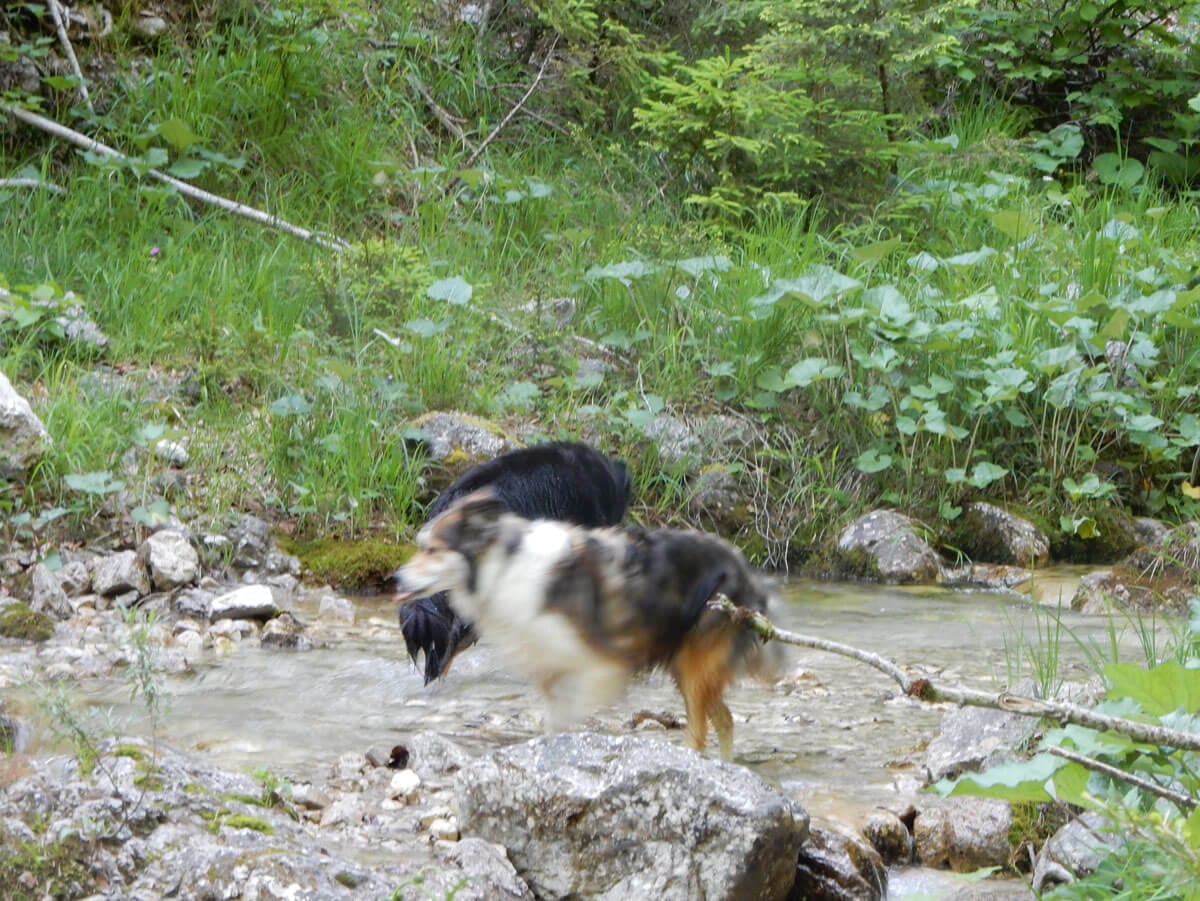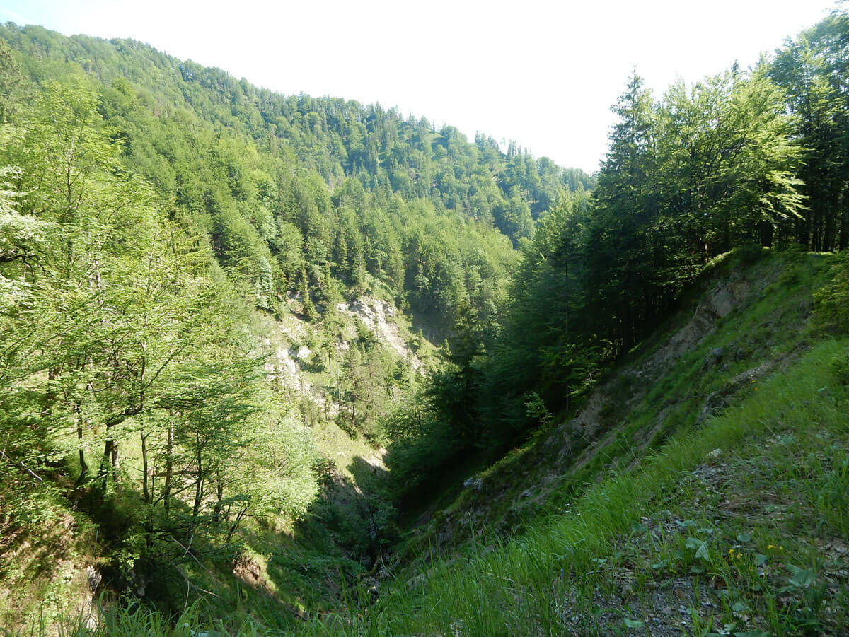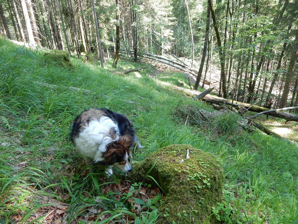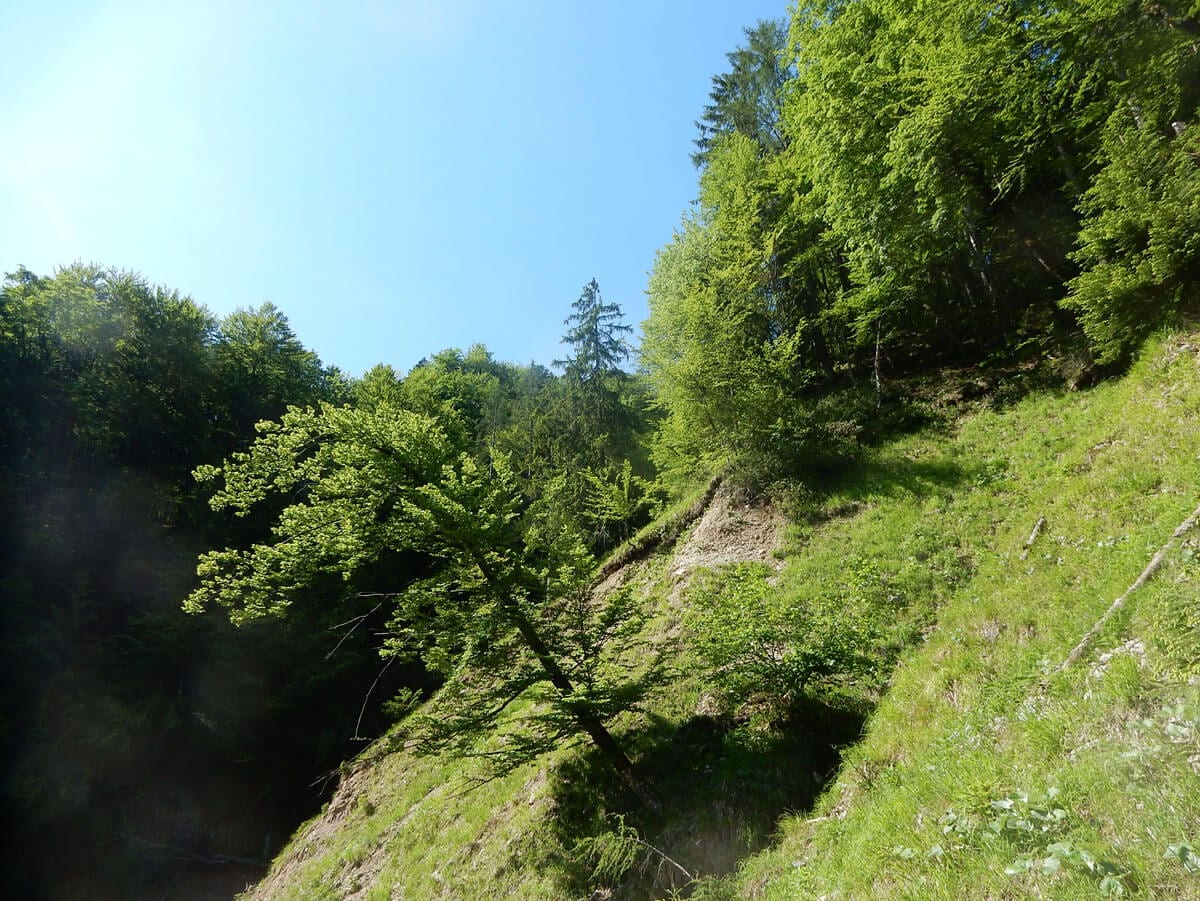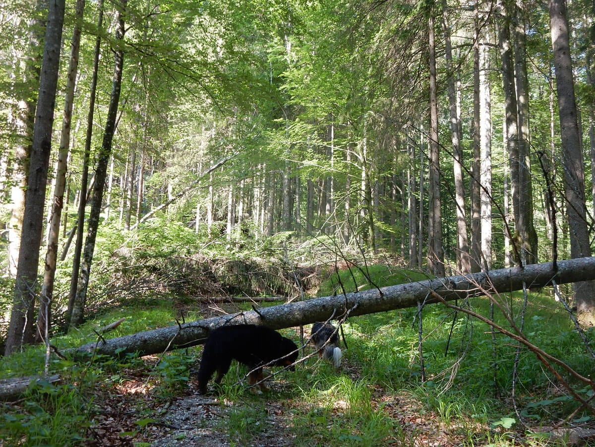 Einfach einmal bis zum Ende des Weissenbach-Grabens und dann nur verfallenen Forststraße mit den Brücken-Ruinen. Das ist für heute genug und wir müssen auch möglichst schnell zu unserem Platzerl, damit s’Herrl den neuen Campingsessel ausprobieren kann. Für mich schaut der ja aus wie ein Sofa, scheint aber echt bequem zu sein ..