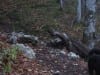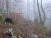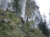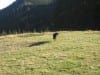 Erste Pause mit Sonnenbad auf der (geschlossenen) Ebenforstalm, dann über die Flanke vom Trämpl hinauf zum Luchsboden. Wir gehen auf der Nordseite (auch vom Luchsboden weiter zum Trämpl) hinauf, zu der jetzt keine Sonne mehr kommt. Es ist also ziemlich nass und rutschig (menschlich gesprochen; hundlich gesprochen ist es ganz normal)