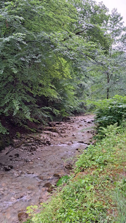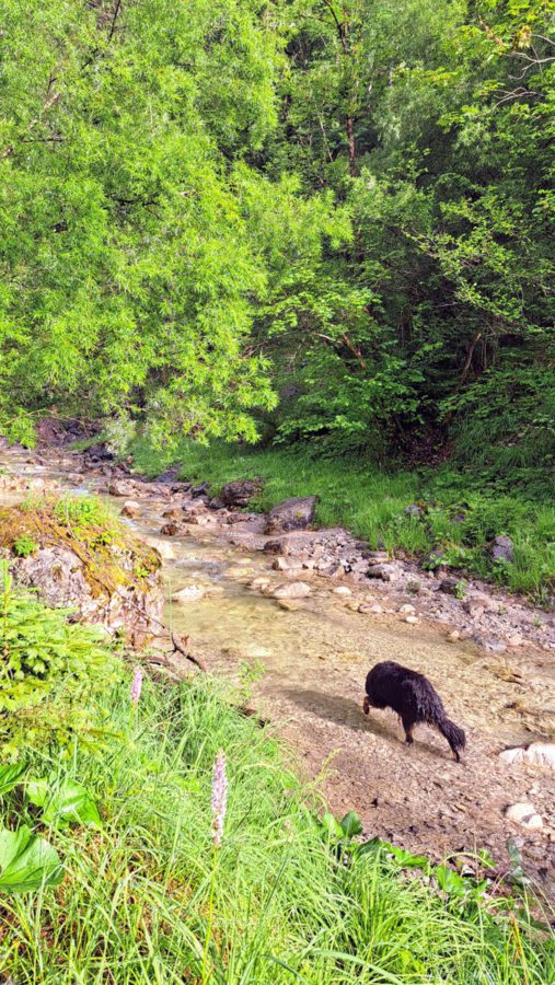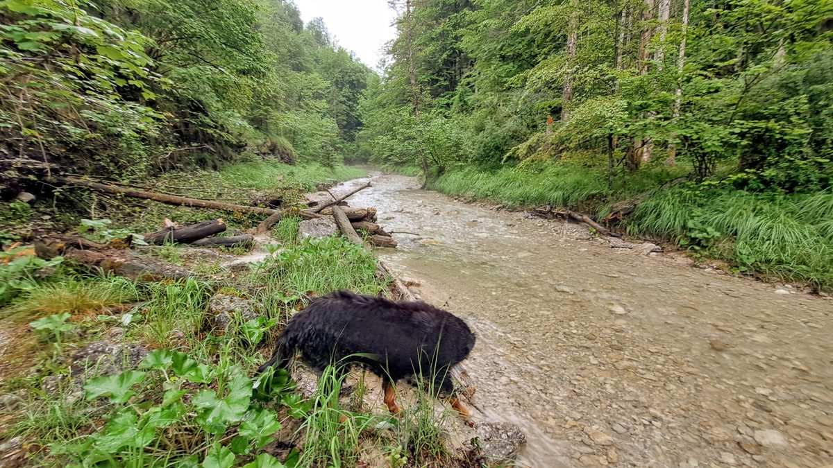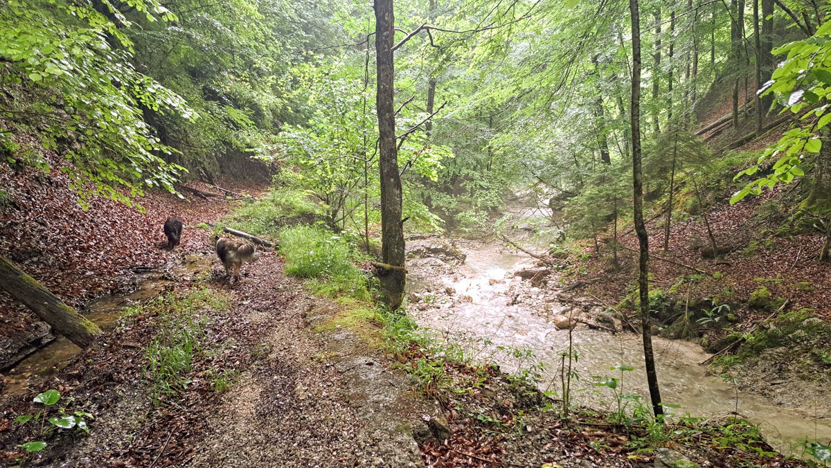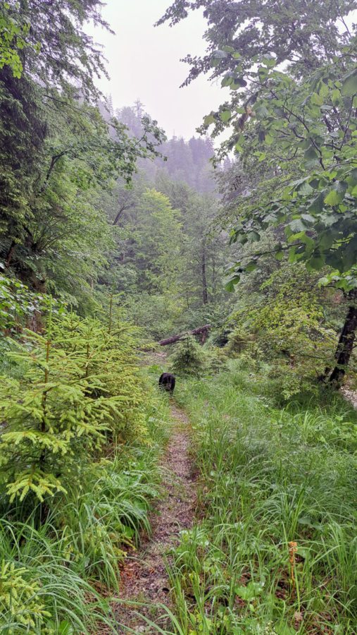 Den Weißenbach entlang rauscht es uns also von unten (Bach) und oben (Regen) nur so um die Ohren. Ein perfektes Wetter, um den ganzen Weg für uns alleine zu haben und überhaupt ein perfektes Sommerwetter!