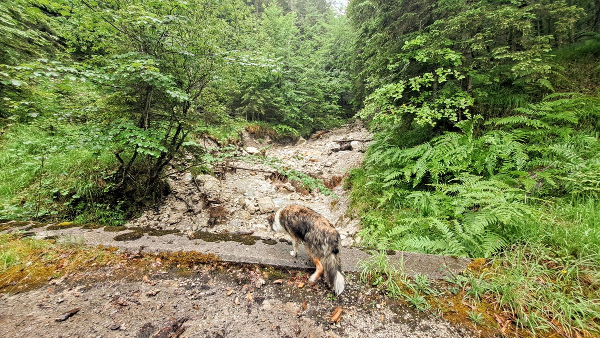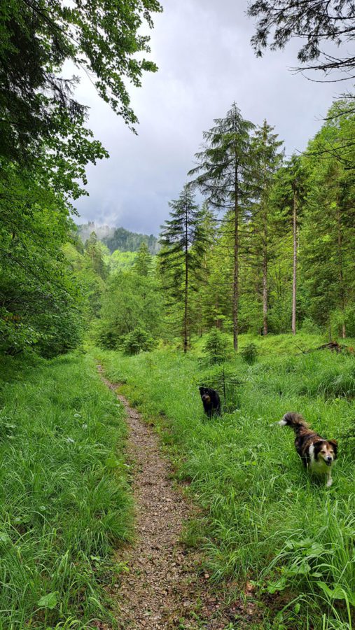 Weil demnächst unsere Sommerwanderungen mit Freunden wieder starten, wollen wir uns heute den Weg anschauen. Noch ein paar Bäume sind umgefallen und man muss etwas mehr herum kraxeln, an ein paar Stellen sind Teile vom Weg weggerutscht, aber insgesamt passt es!