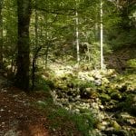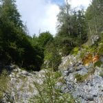 Zuerst neben dem Hinteren Rettenbach und dann neben dem Fischbach wandern wir bis zum Tal-Ende. Das ist ein Kessel, aus dem es nur einen bequemen Ein- und Ausgang gibt. Den Steig hinauf und hinaus über die steile Wand ersparen wir uns heute und kehren nach einer kurzen Pause um – zurück gehts auf dem selben Weg.