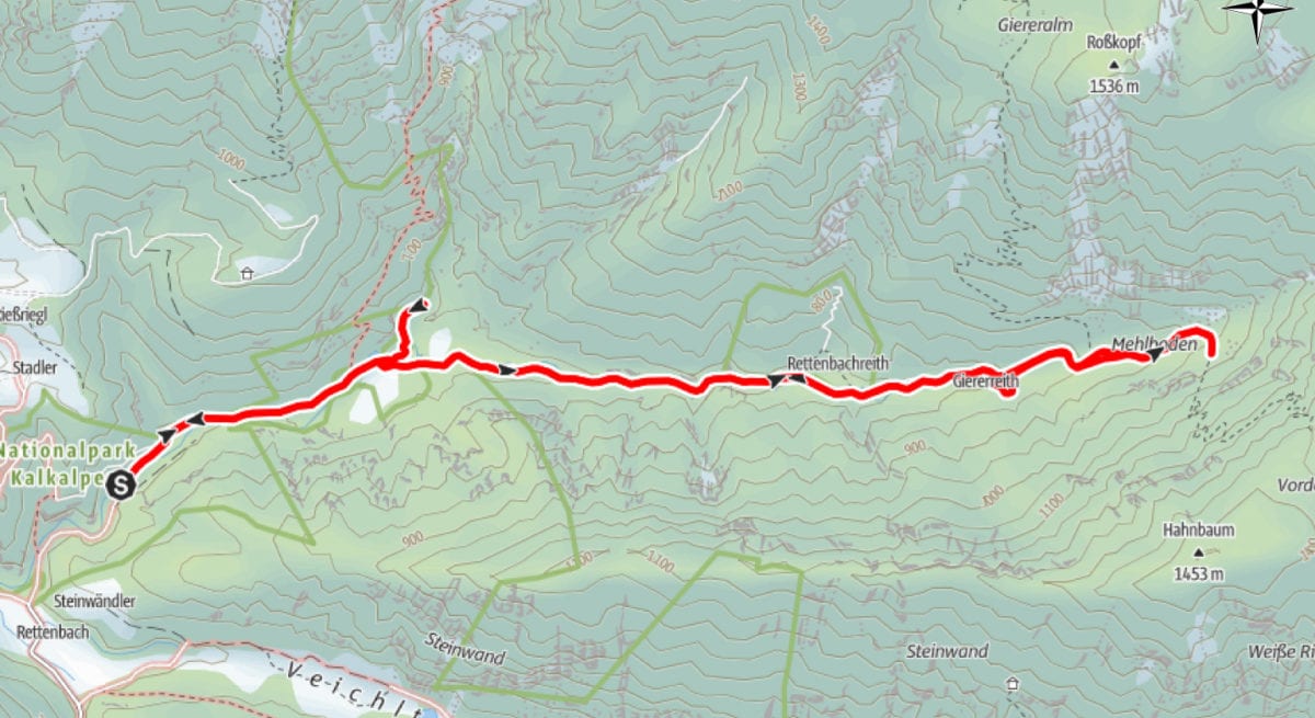 Am süd-westlichen Rand des Nationalparks, das Sengsengebirge entlang. Wir schauen uns hier zum ersten Mal um, denn hier gibt es einige Wege und Berge, die wir uns noch ansehen müssen. Aber heute Schnupper wir nur ein bisserl in der Gegend herum.