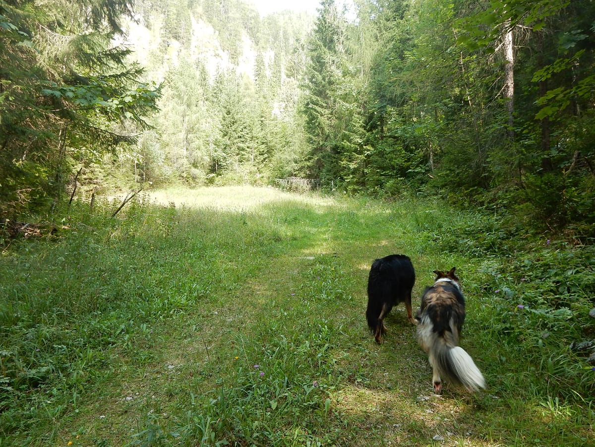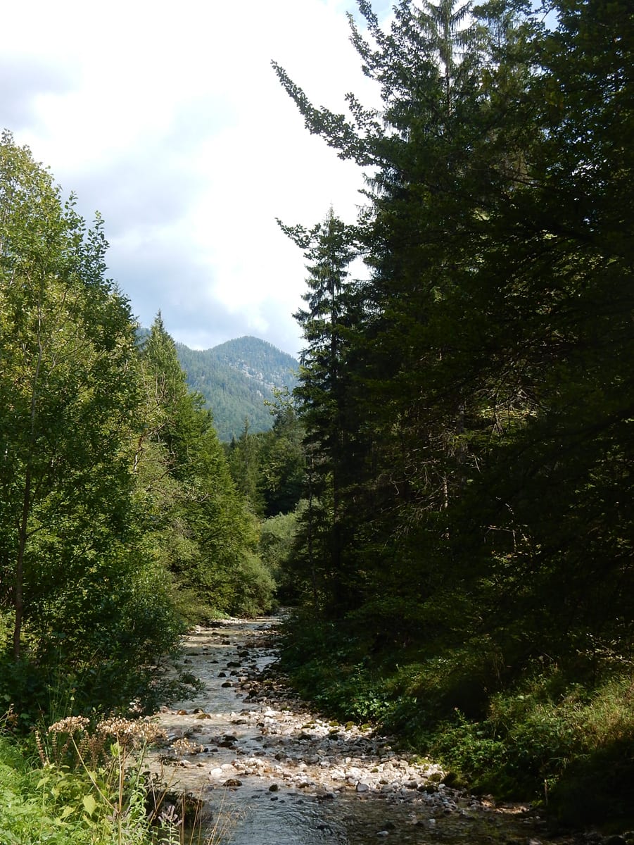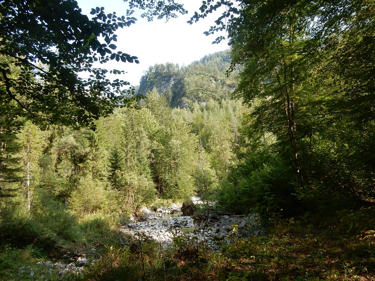 Zuerst neben dem Hinteren Rettenbach und dann neben dem Fischbach wandern wir bis zum Tal-Ende. Das ist ein Kessel, aus dem es nur einen bequemen Ein- und Ausgang gibt. Den Steig hinauf und hinaus über die steile Wand ersparen wir uns heute und kehren nach einer kurzen Pause um – zurück gehts auf dem selben Weg.