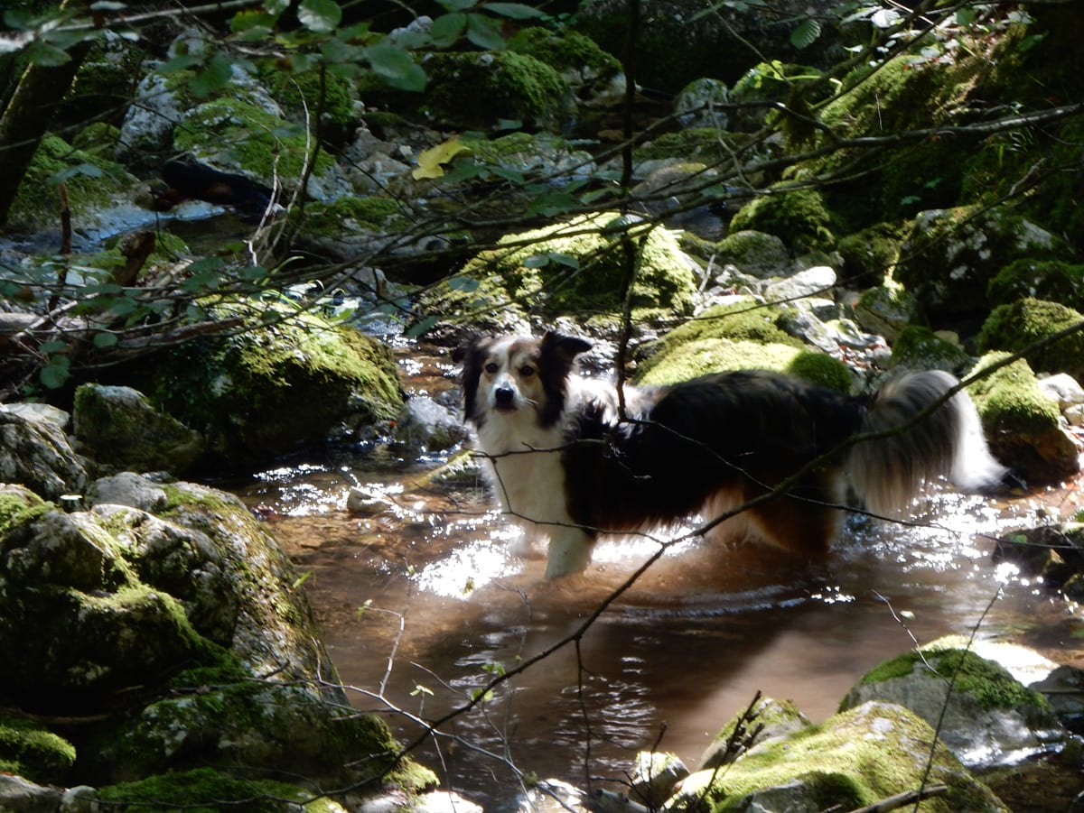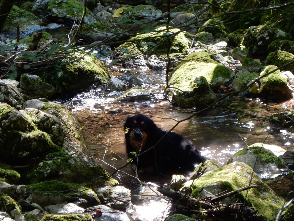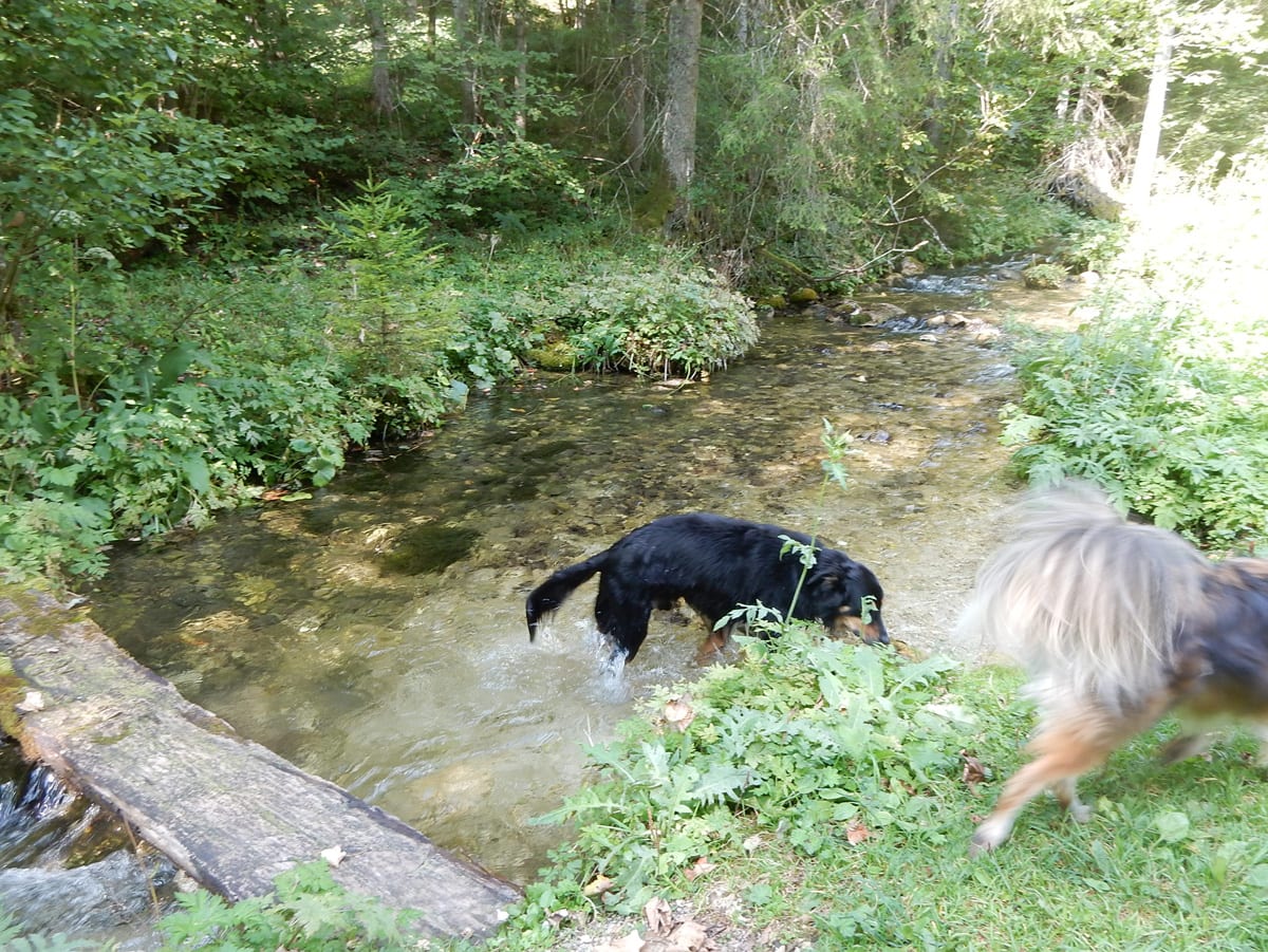 Am unteren Ende des Tales kommen wir an den Rettenbachquelle vorbei. Eine ist direkt neben dem Weg, die andere ein Stück bergauf. Die oberen sehen wir heute leider nicht (zu wenig Wasser), sondern hören sie nur unten der Felsbrocken sprudeln. Das Wasser kommt dann erst ein Stück unterhalb der Quelle an die Oberfläche.