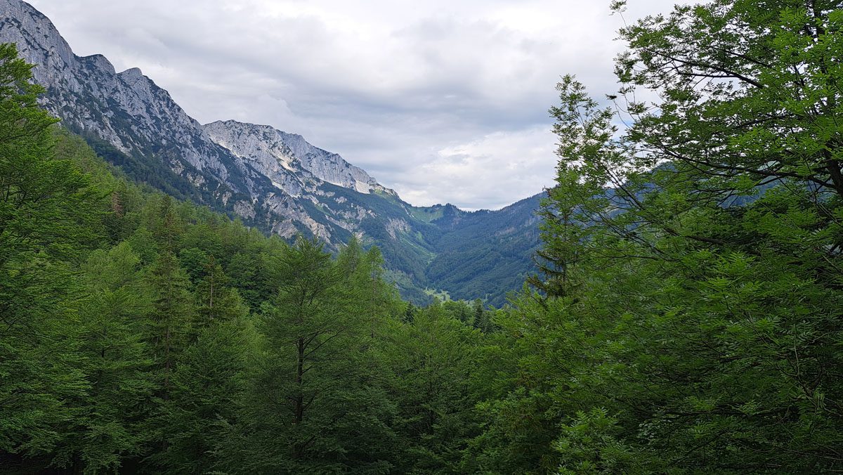 Hinauf wandern wir unter dunklen Wolken, manchmal mit kühlem Wind und überhaupt sehr zivilisierten Temperaturen.