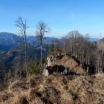 Am Horizont schimmern die Haller Mauern, das Tote Gebirge und sogar das Sengsengebirge mit Schnee auf den Spitzen. Wir müssen aber bis auf ca. 1.300m hinauf wandern, um ein paar Schneeflecken in schattigen Winkeln zu finden.