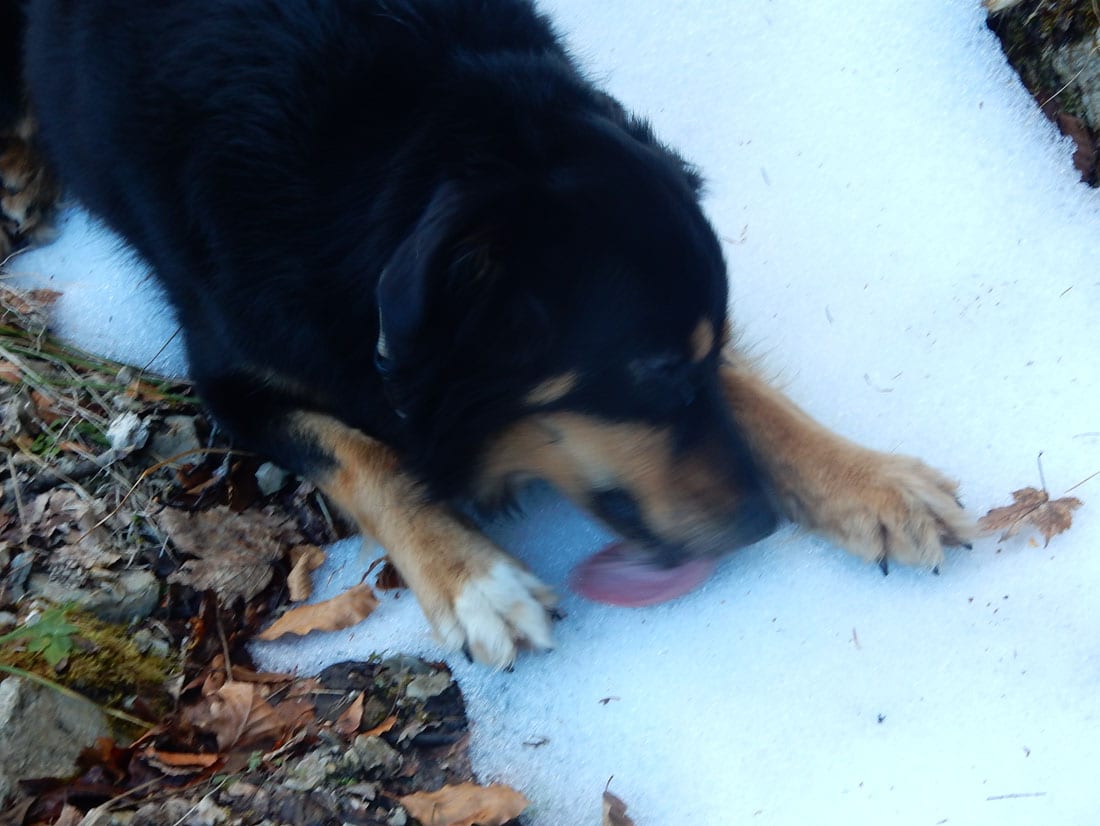 Kein Wunder, denn wir sind beinahe die ganze Zeit in strahlender Sonne unterwegs und zu Mittag hat es 13° – das hält der beste Schnee nicht aus.