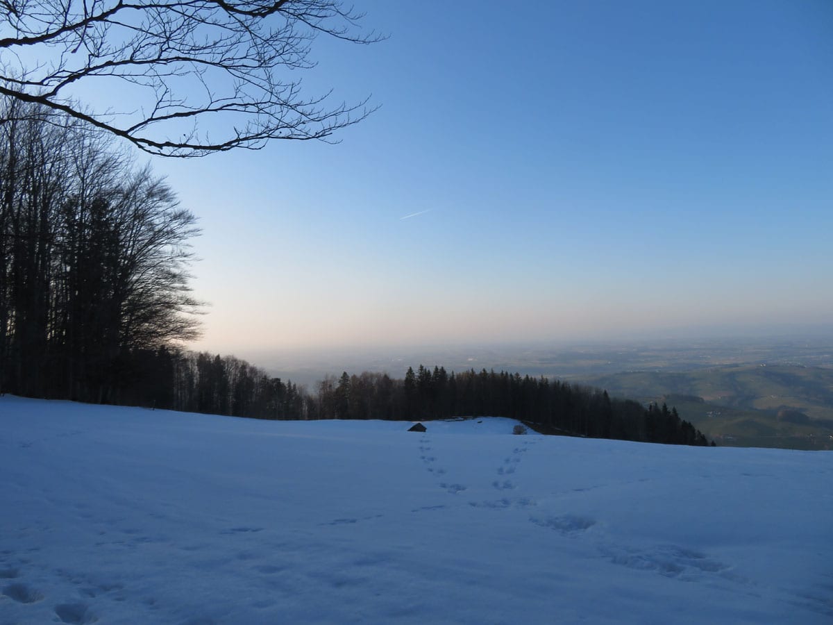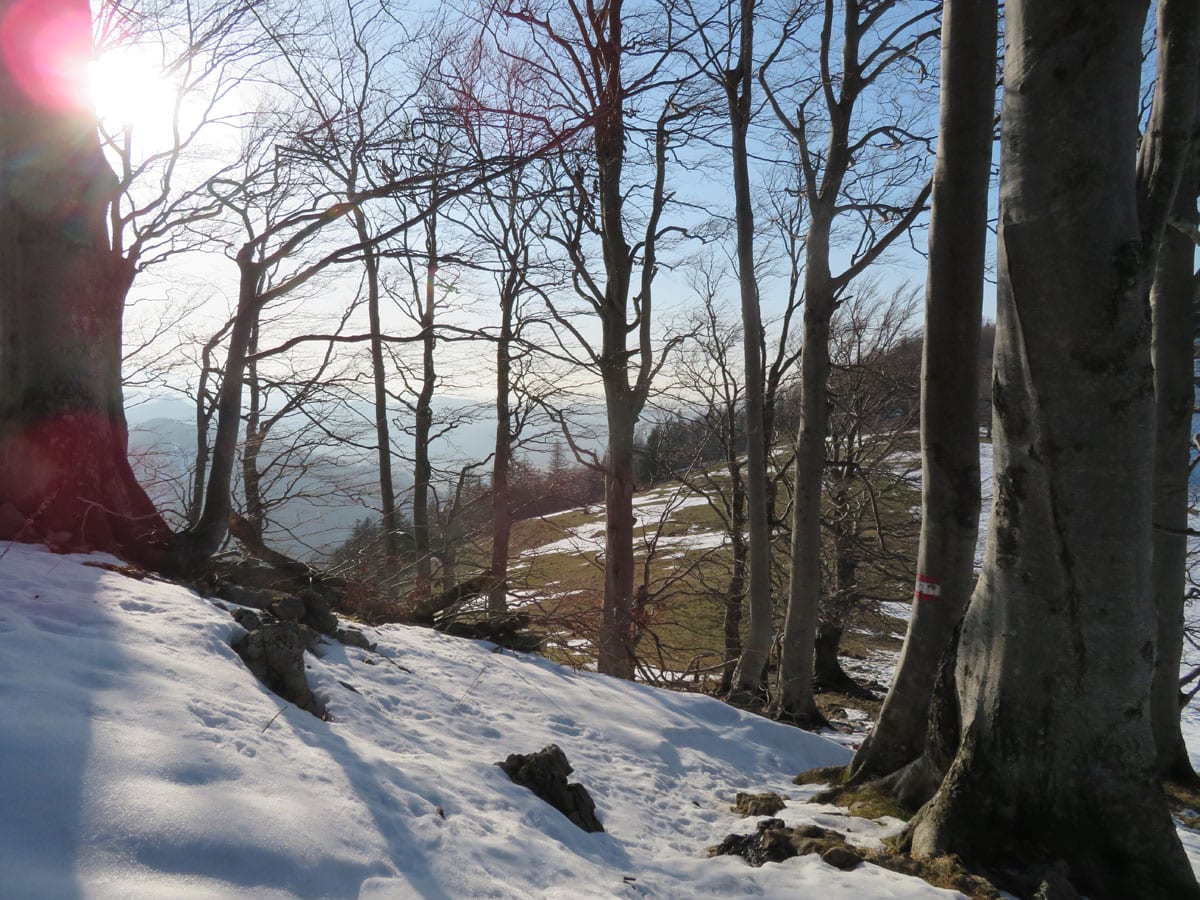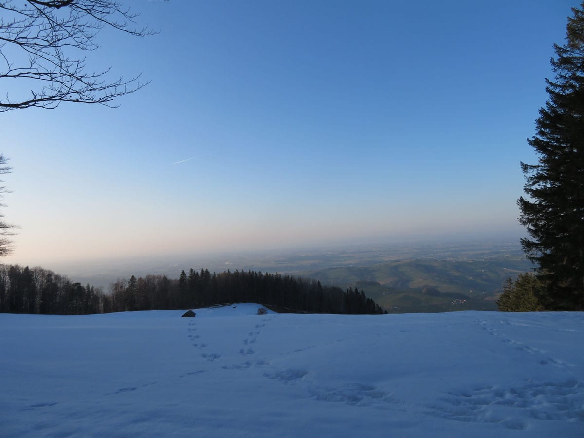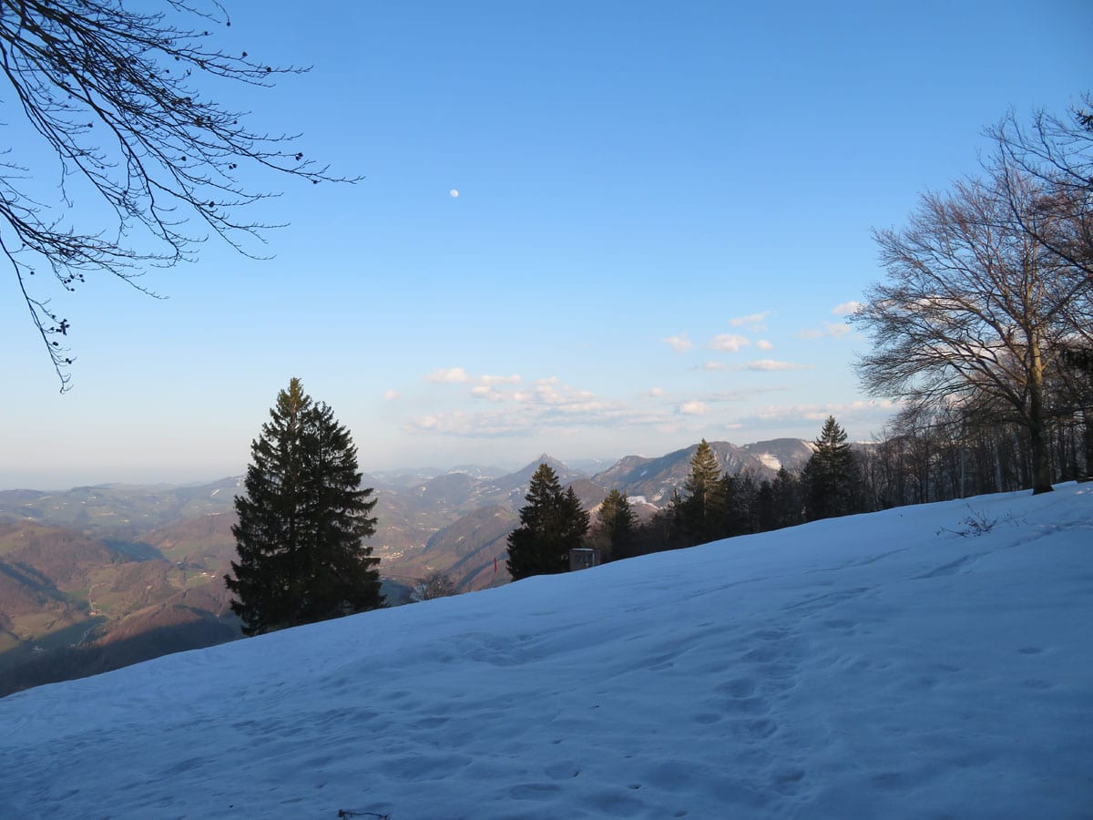 Und weil auf alles das auch noch die Sonne strahlt, ist so eine Freitag-Nachmittag-Wanderung gemeinsam mit Kira, Mato und ihren Menschen doch das einzig richtige, das man machen kann (Weil es sich durch den Schnee etwas langsamer stapft als ohne, kürzen wir ein bisserl ab und lassen heute das Kruckenbrettl weg).