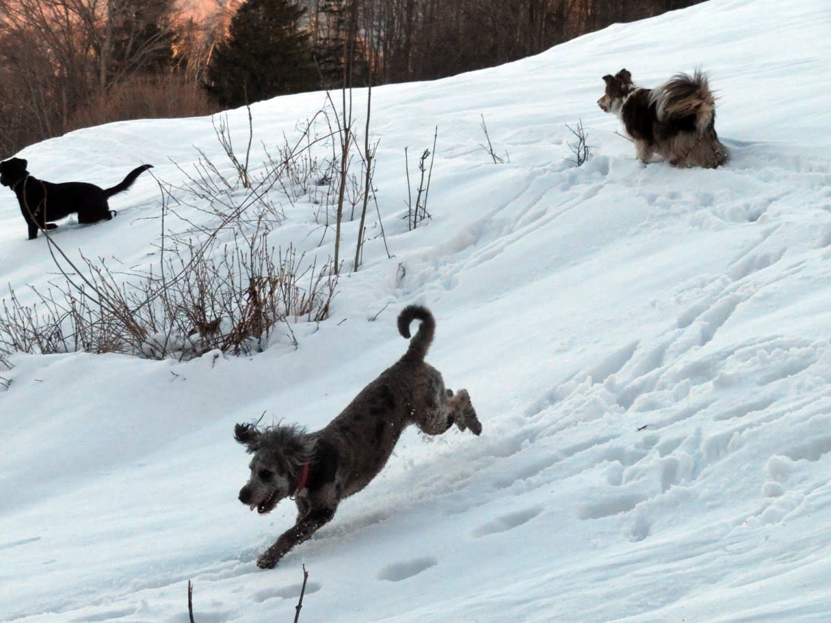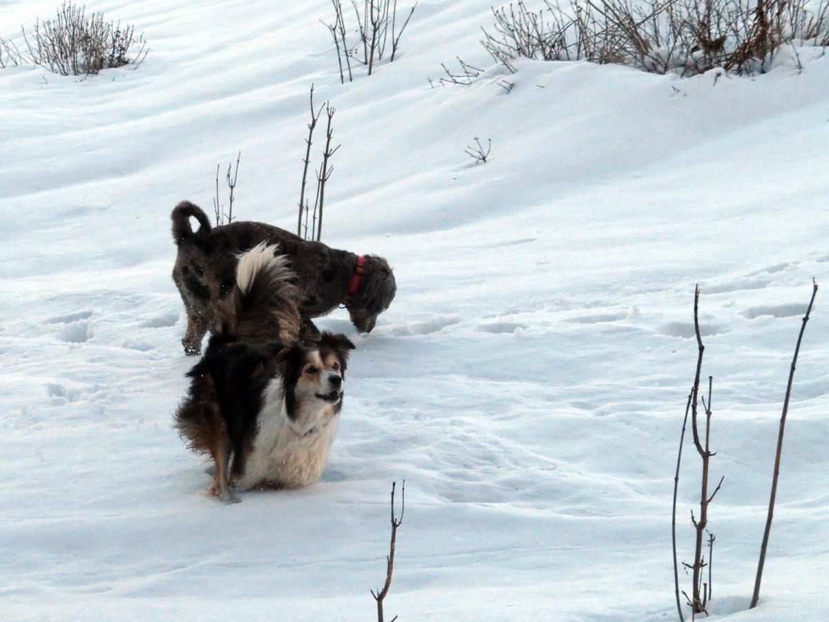 Schneerekord für diesen Winter! Auf dem ganzen Weg und dann noch bis zu 50 cm tief – das hatten wir in diesem Jahr noch nicht. Die Menschen mit den kurzen Hosen und den niedrigen Schuhen können den tiefen Schnee natürlich noch viel mehr genießen als wir Vierbeiner.