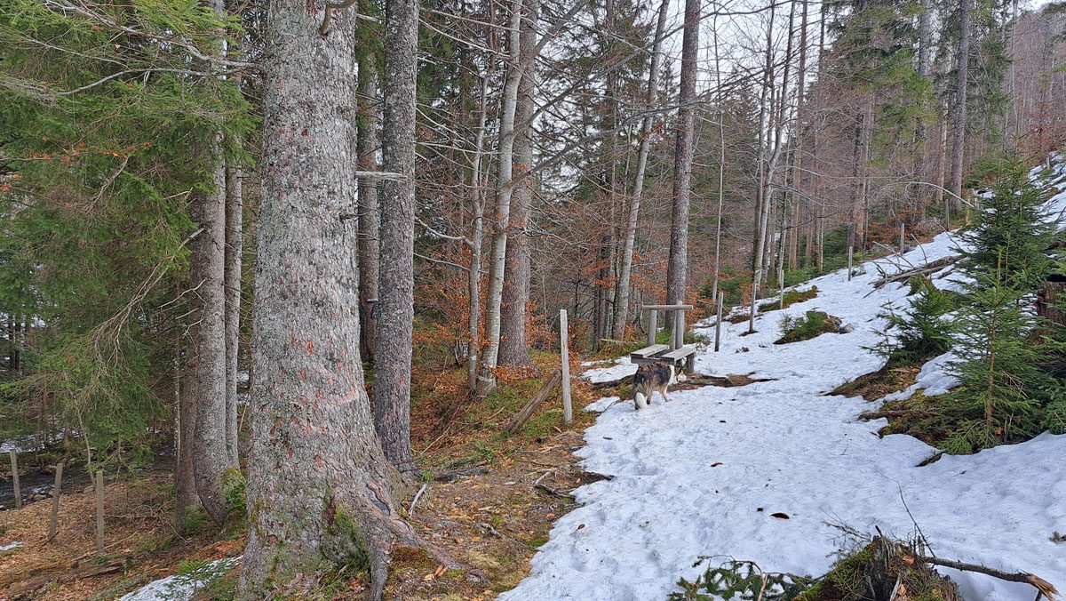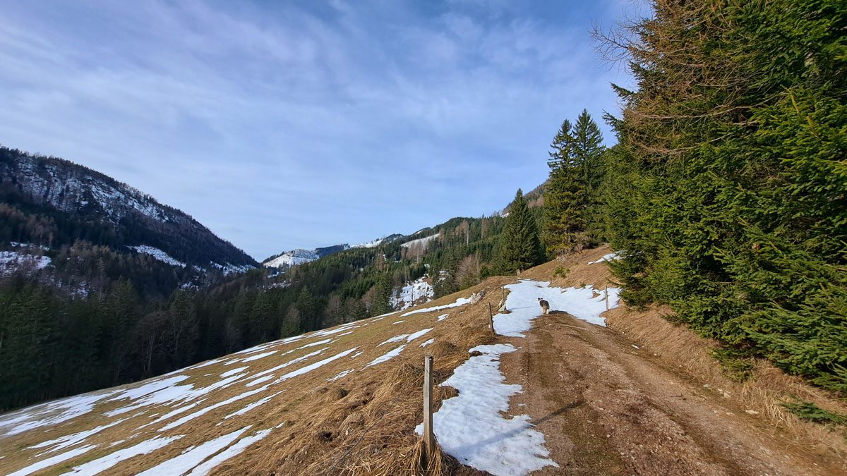 Zuerst wollten wir zur Blahbergalm, aber die Zufahrt zum Parkplatz Weisswasser ist mit Bäumen verlegt. Also ein Stückerl weiter den Hengstpass hinauf, bis zum Holzgraben.