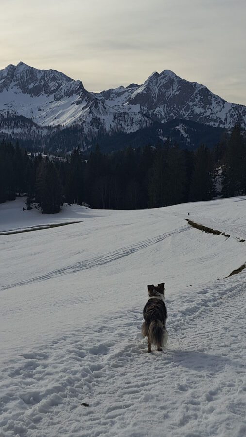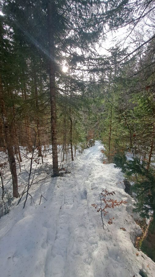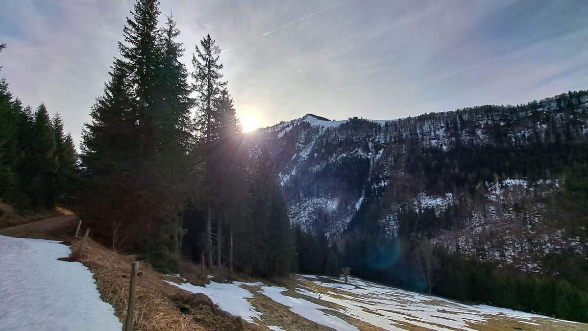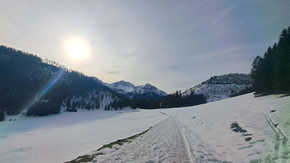Es ist eine Wanderung mit manchmal gar keinem, dann sehr festem, manchmal sehr viel Schnee zum Einsinken bis zum Knie. Aber ganz wichtig: während unten überall der Nebel liegt, bekommen wir eine ordentliche Portion Wintersonne zum Jahresabschluss geliefert.