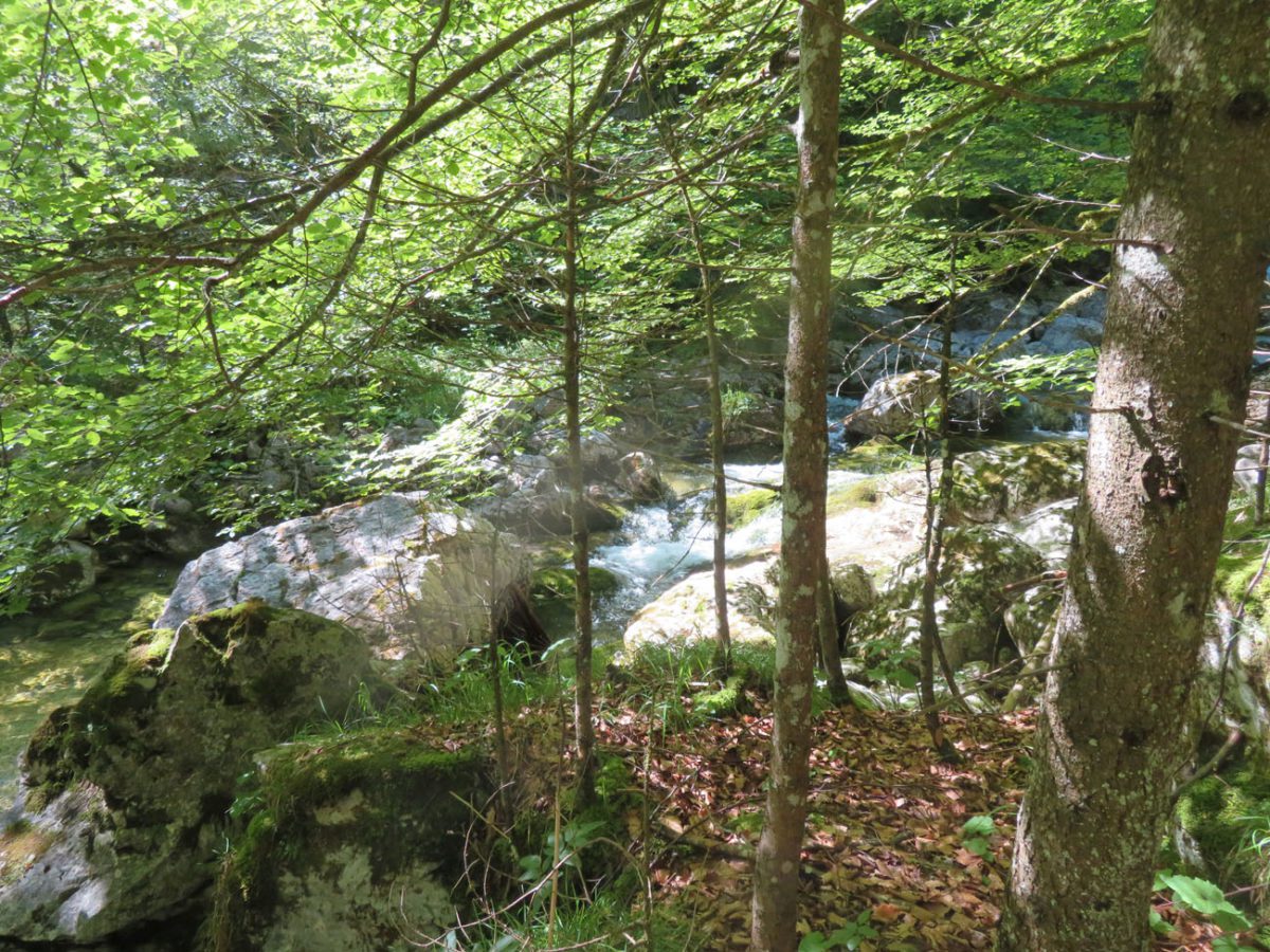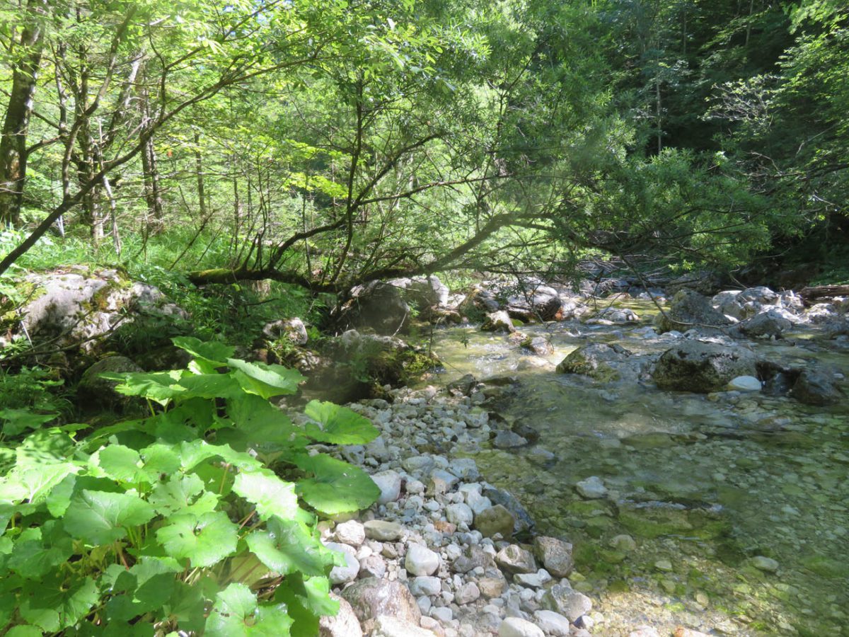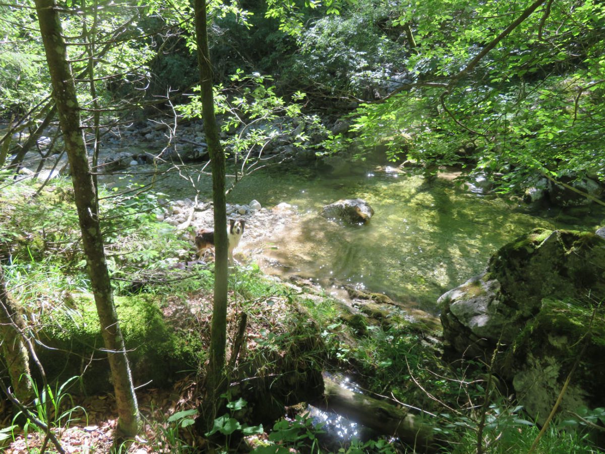 Nach einigem hin und her, einem (fürs Herrl) nicht ganz so angenehmen Durchqueren einer Brennesselkolonie und viel Über-Steine-Kraxeln im trockenen Bachbett, finden wir unseren neuen Lieblingsplatz.