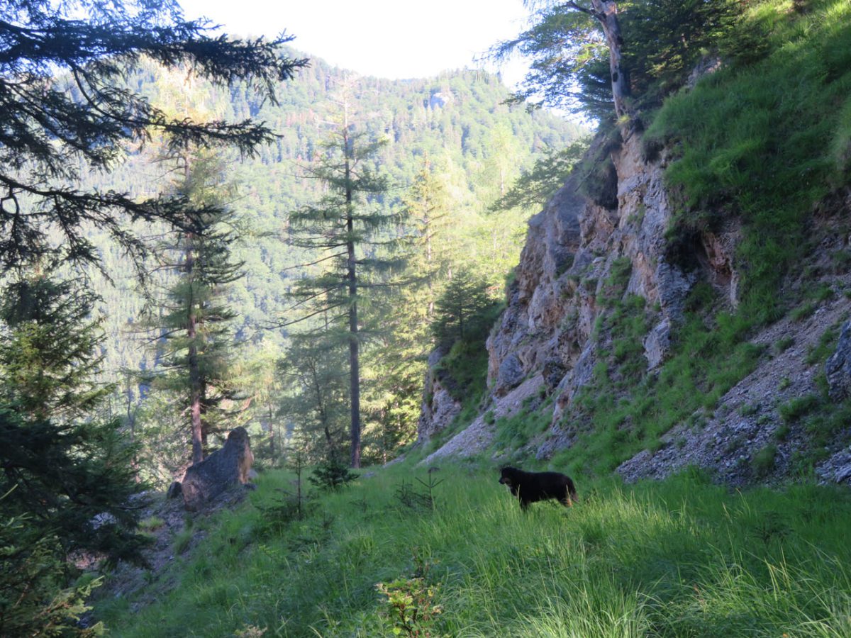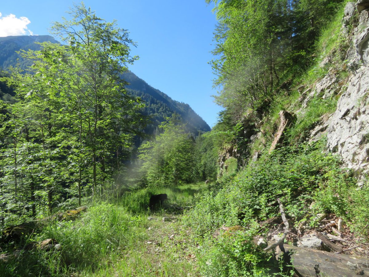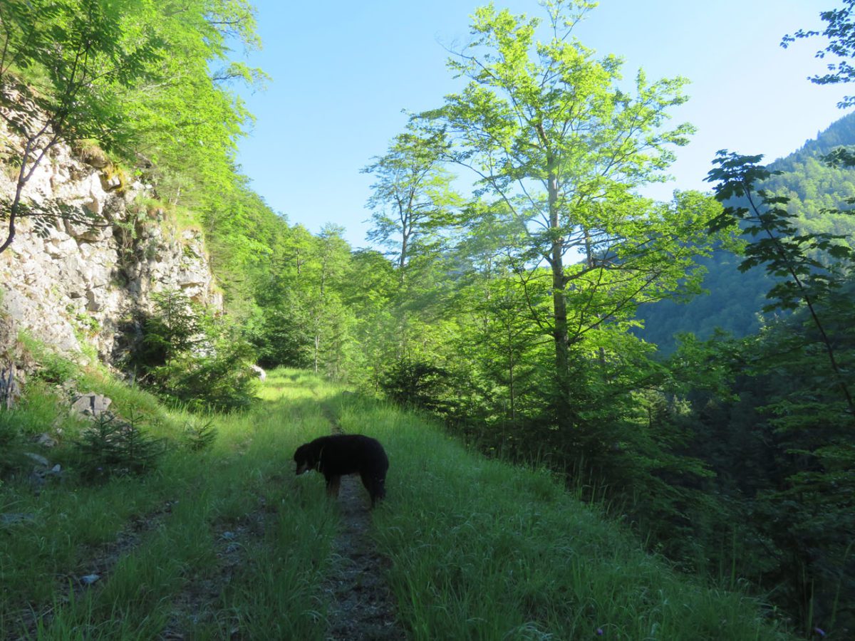 Nach einigem hin und her, einem (fürs Herrl) nicht ganz so angenehmen Durchqueren einer Brennesselkolonie und viel Über-Steine-Kraxeln im trockenen Bachbett, finden wir unseren neuen Lieblingsplatz.