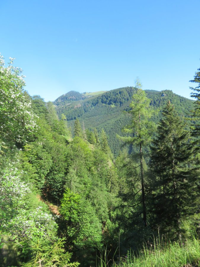 Bevor es heiß wird, spazieren wir die Straße zum Hütberg hinauf. Bis zur Hälfte der Strecke, dann zurück hinunter zur Krahalm.