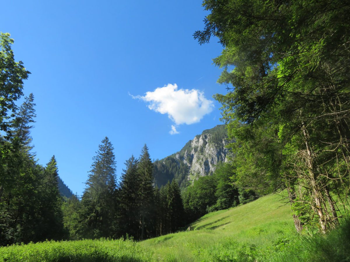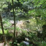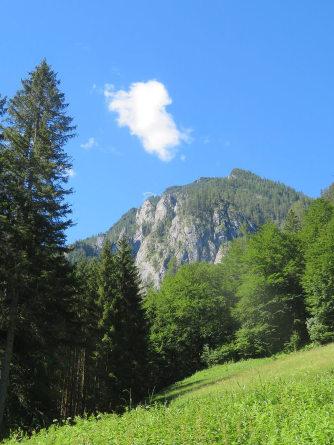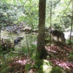 Gleich dort, wo die Krumme Steyrling wieder ans Tageslicht kommt, direkt neben einer gar nicht so kleinen Quelle und neben einem Pool (mit Fischen drin), das die Krumme Steyrling ausgebaggert hat, bleiben wir. Schatten, Wasser, Plantschen, Lesen. So muss ein Sommertag sein 🙂