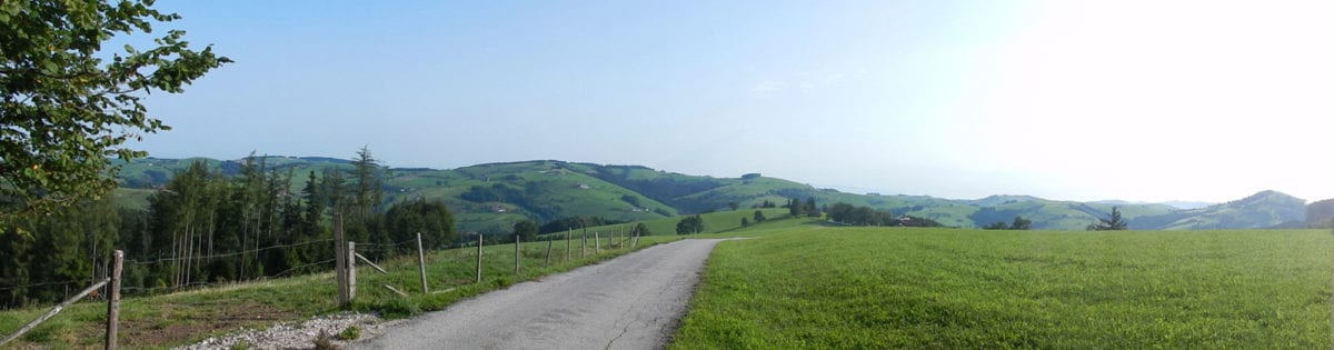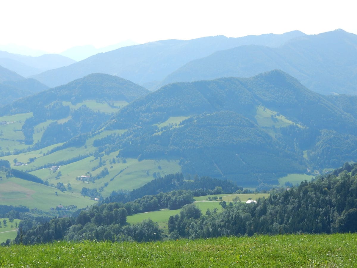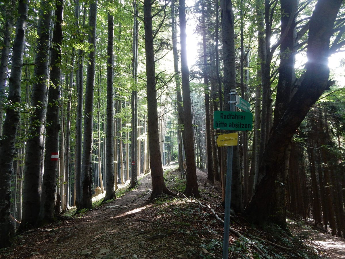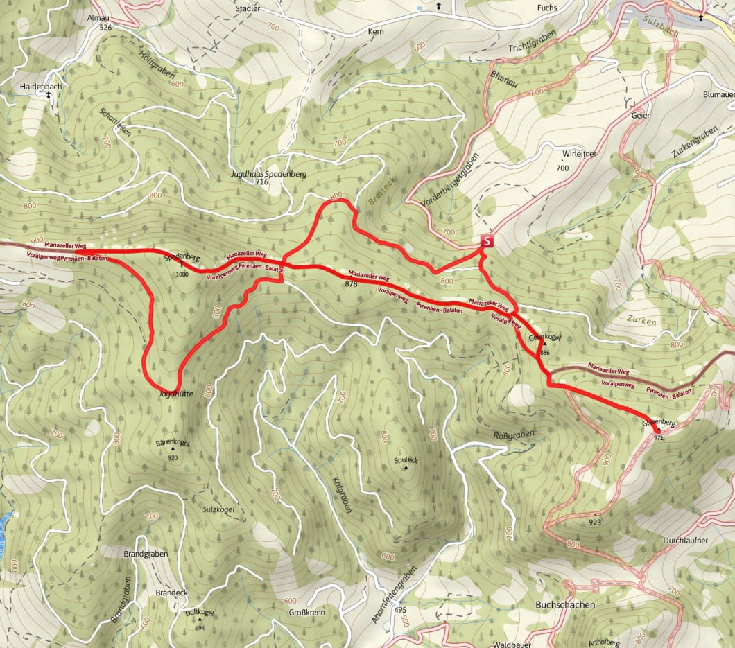 Die Wettervorhersagen für heute Nachmittag sprechen von Hitze und/oder Gewittern (je nachdem welche Prognose man sich ansieht). Für eine lange Wanderung also nicht ganz optimal. Und weil das dauernde Herumsitzen am Bach mit Baden, Lesen und Dösen auch schon fad ist, kommt heute eine kurze Sonntagswanderung: zuerst zum Spadenberg, dann zum Glasenberg und zurück.
