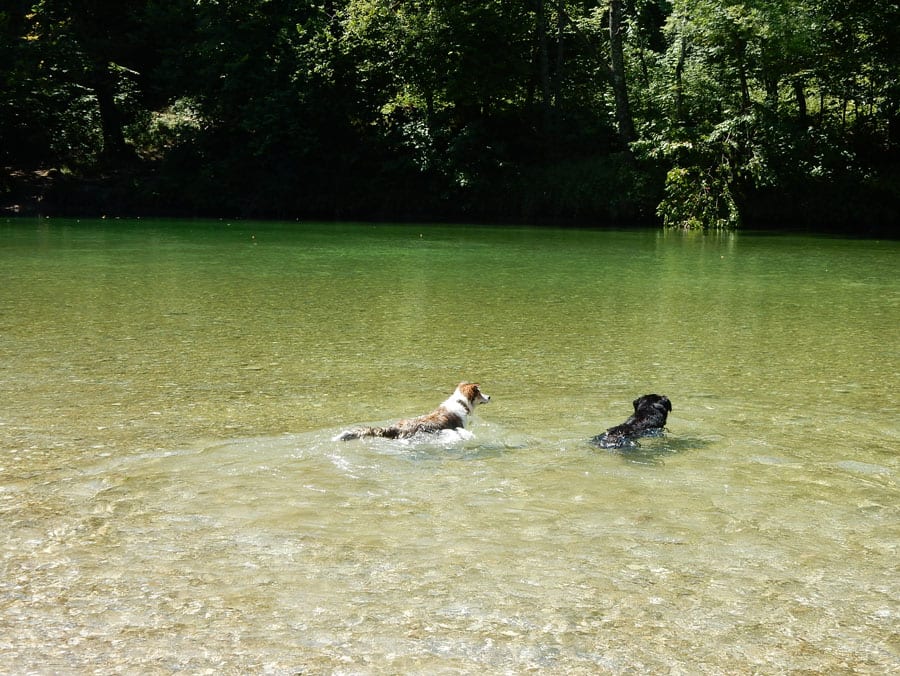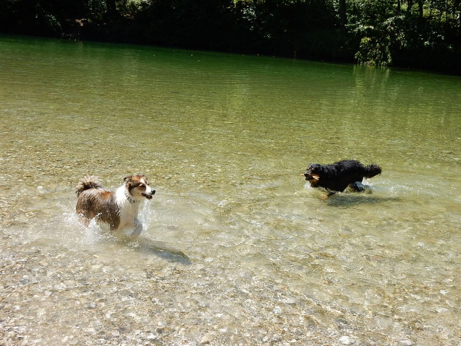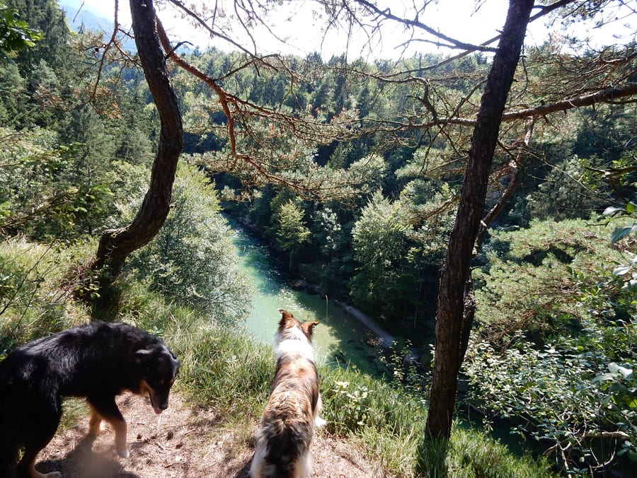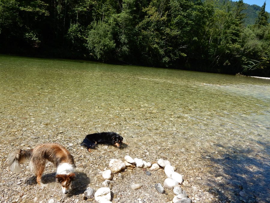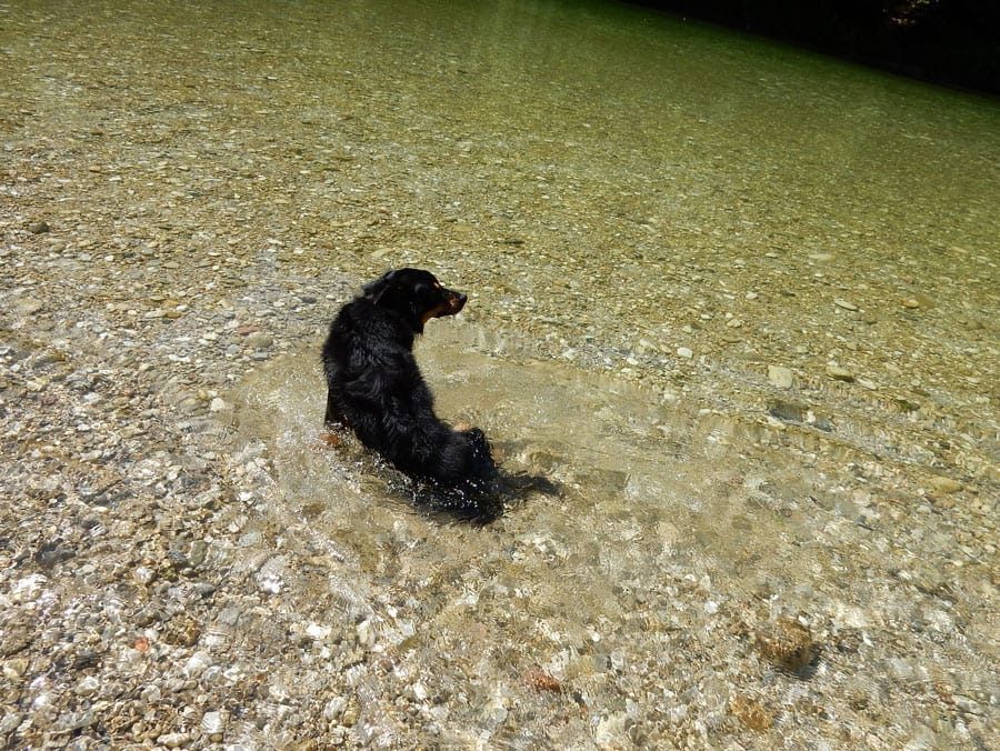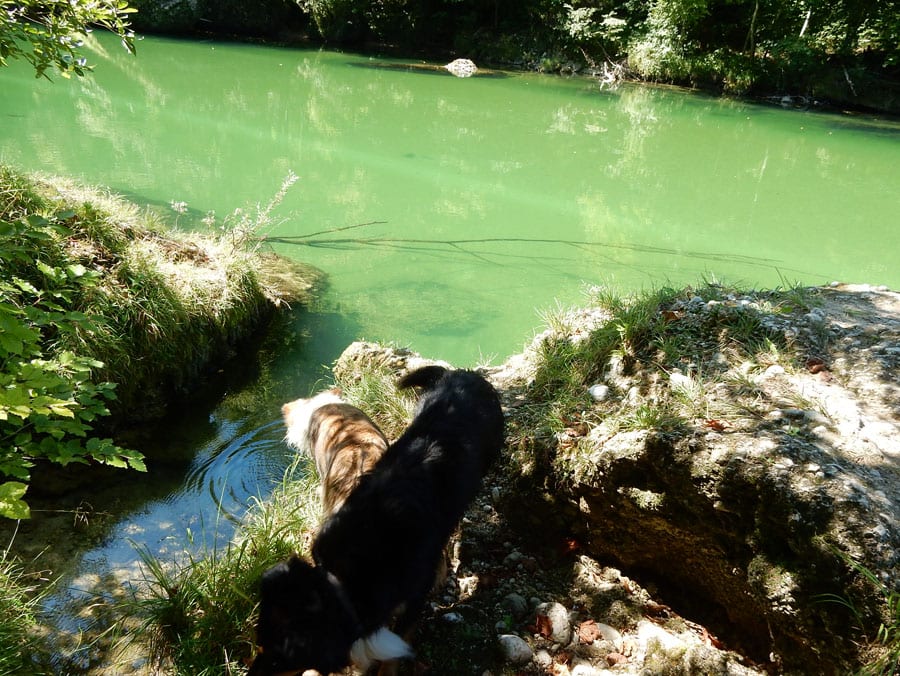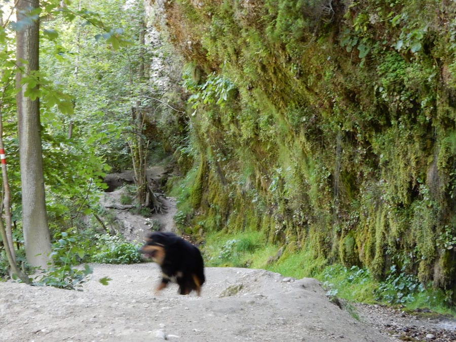 Rund um die Rinnende Mauern bei Molln gibt es alles, was das Hundeherz begehrt: Schattige Pfade und vieeeel kühles Wasser in der Steyr (aber nur an Wochentagen, am Wochenende ist hier viel los).