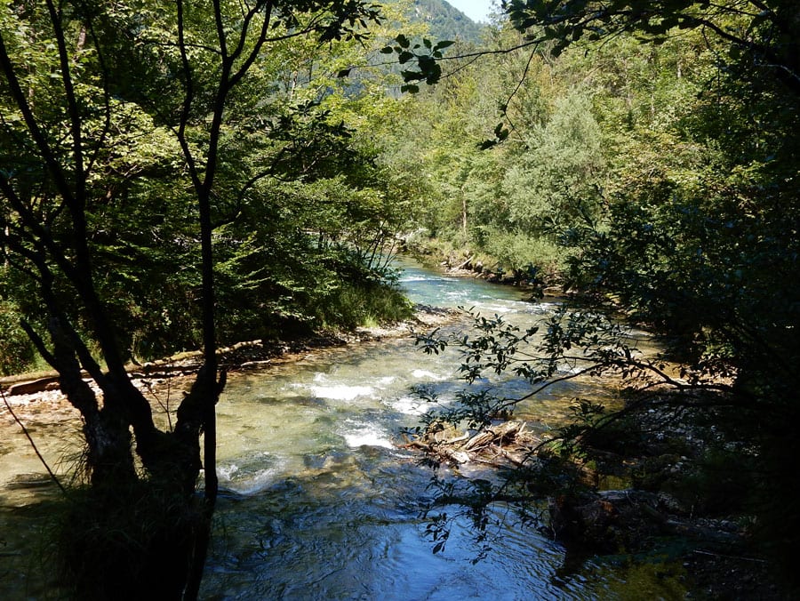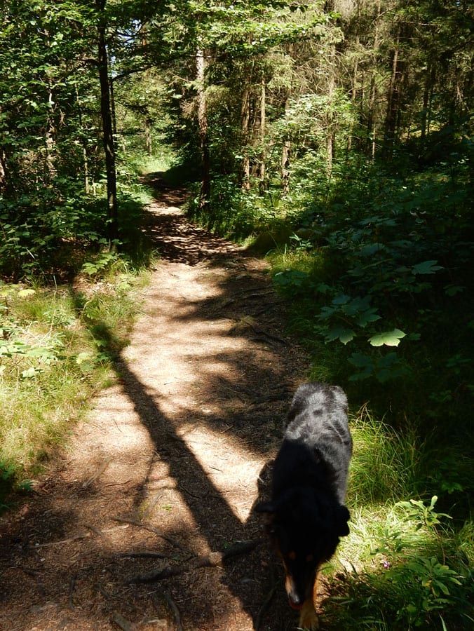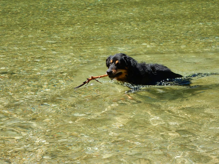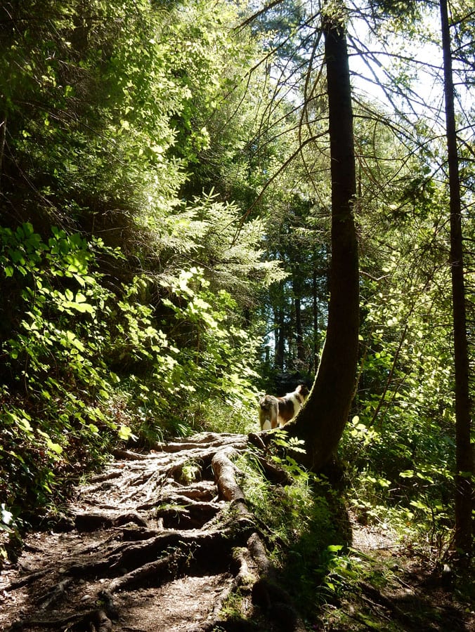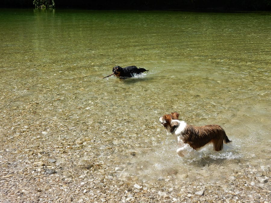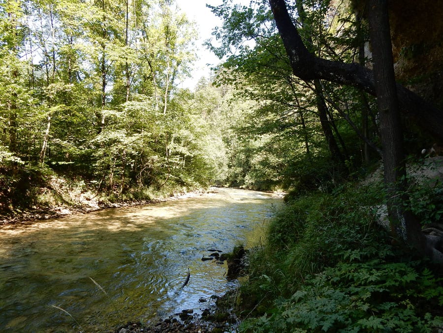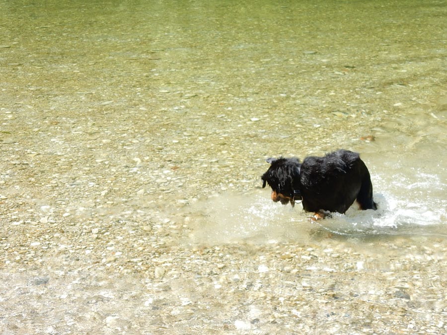 Rund um die Rinnende Mauern bei Molln gibt es alles, was das Hundeherz begehrt: Schattige Pfade und vieeeel kühles Wasser in der Steyr (aber nur an Wochentagen, am Wochenende ist hier viel los).