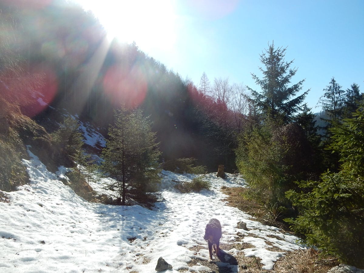 Ein früher Frühlingstag auf dem Rundweg „Tal des Holzes“: oben Sonnenbad und noch ein bisserl Schnee, unten, den Weissenbach entlang, kalt und eisig. Rechnet man das zusammen, dann kommt ein Nachmittag wie aus dem Urlaubskatalog heraus!