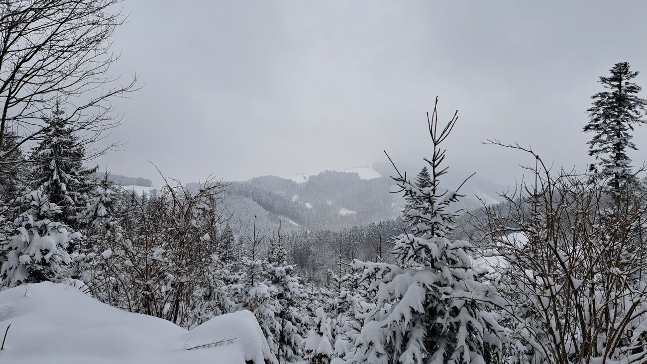 Wie auch gestern schon müssen wir nicht weit zum echten Winter fahren. Heute, im Kohlergraben, haben wir Schneeschuh-Verhältnisse von Anfang bis Ende – yuhuuu!