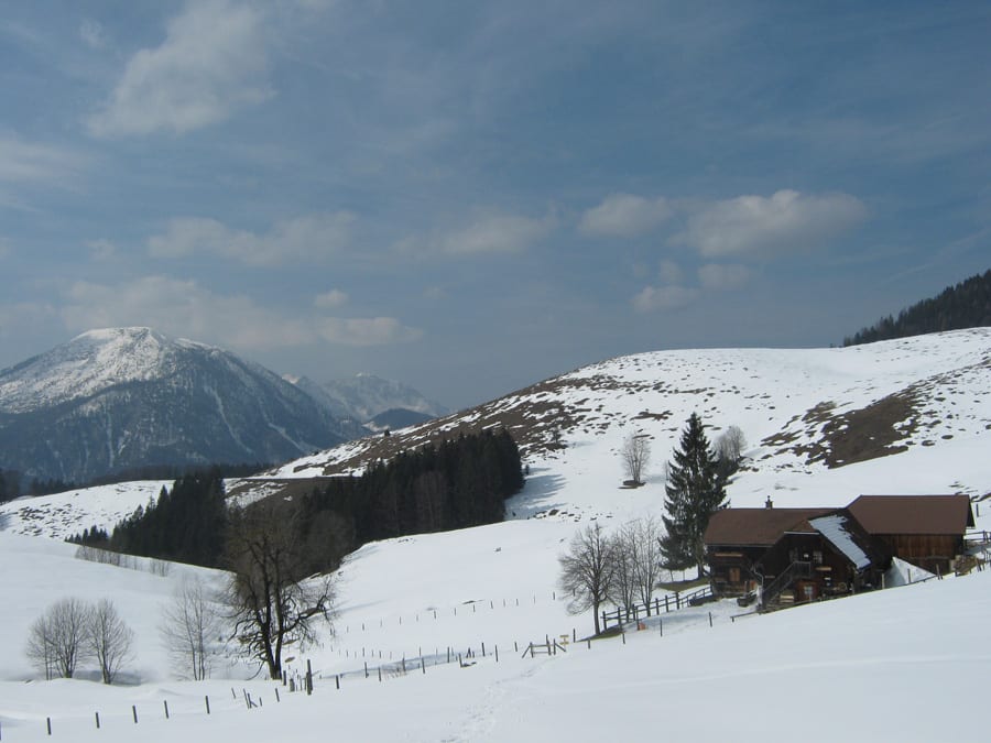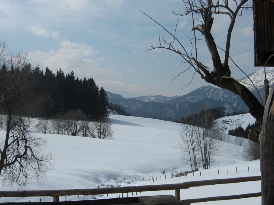 Vielleicht ist das der letzte „Beinahe-Noch-Wintertag“ im Hintergebirge. Es sieht jedenfalls danach aus, also ob jetzt der Frühling lange genung gewartet hat und jetzt richtig Gas gibt. Sonnenschein gibt es den ganzen Tag und man kann beinahe zusehen, wie der Schnee wegschmilzt.