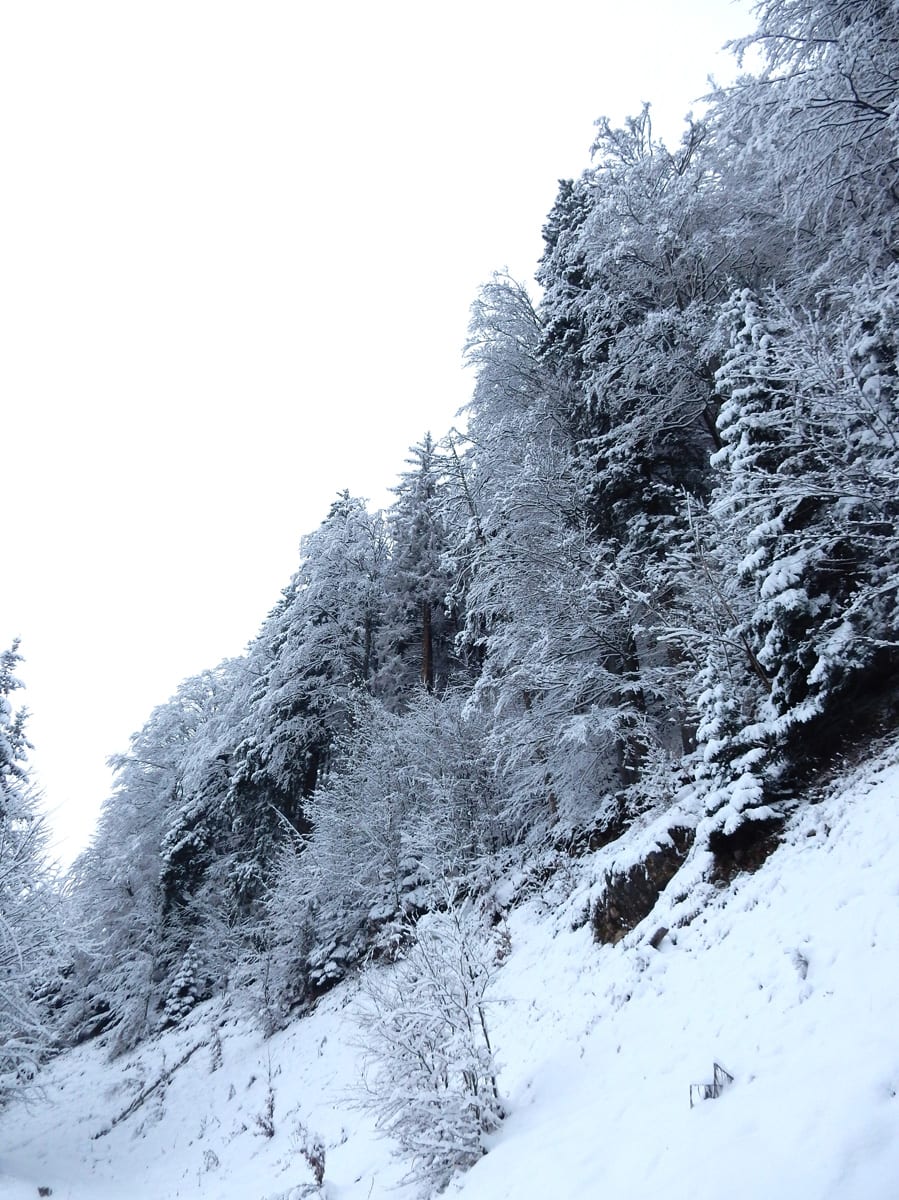 Bei -2° gehen wir los und bei -2° kommen wir an. Bei Wetter tut sich also nicht viel heute –  was egal ist, weil vom Schnee hat es in den letzten Tagen genug hier gelassen.