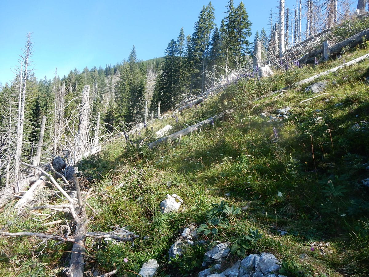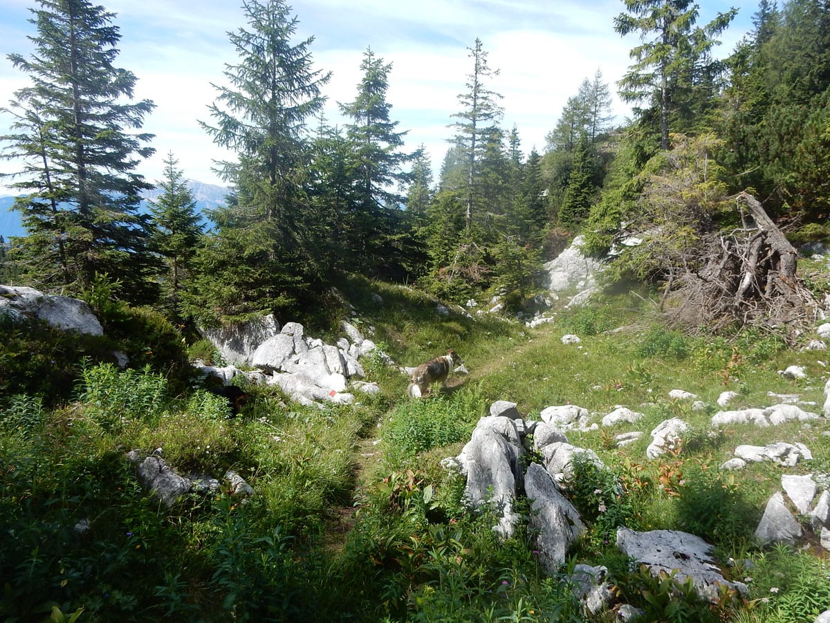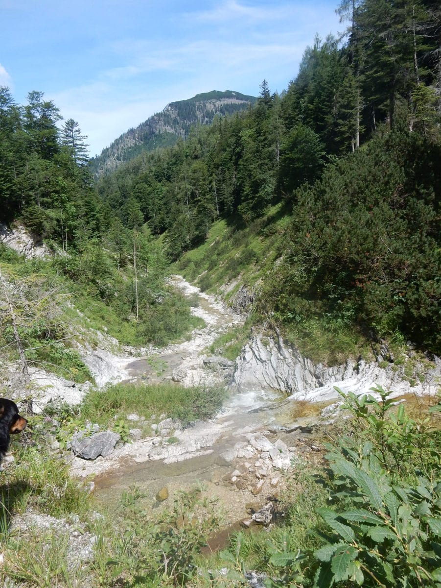 Vom Bodinggraben zum Steyrsteg und dann noch bis zur Weingartalm bleiben wir im Schatten des Größtenberges, viel wärmer wird es also nicht. Weil der Weg aber kontinuierlich und angenehm ansteigt, kommt die Wärme bald von innen.
