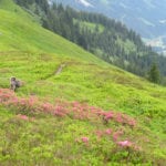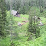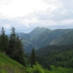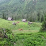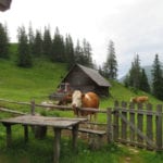 Start ist in Radmer um ½8 Uhr und dann wandern wir recht gemütlich bergauf durch den Wald – zuerst ein kleines Stück Forststraße, dann sehr, sehr schöne Steige geht es zum ersten Zwischenziel auf der Schafböden-Alm (1.600m) hinauf. Die haben wir nach ca. 2 Stunden erreicht. Den Kühen hier scheint es richtig langweilig zu sein, die haben echt Spaß daran, uns den Weg zu versperren. Aber mutig sind sie nicht, also schaffen wir es nicht nur hinter den Zaun rund um die Hütte, sondern auch – wir wissen ja wie das geht – weiter hinauf zum Grat.