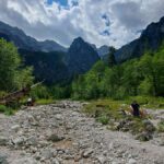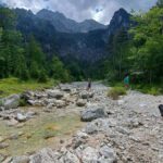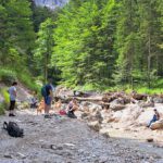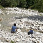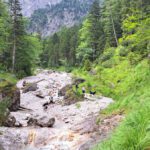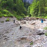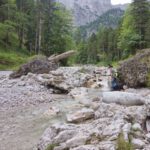 Von der Bernerau spazieren wir zuerst zum Talabschluss beim Weissenbach, der schönste Platz für eine Pause überhaupt (finde ich)! Ein Stück zurück auf demselben Weg, den wir hergekommen sind, bis dorthin, von wo links der Hungeraubach über den Schotter heran fließt. Dort, vor uns, liegt der zweite Talabschluss – anders, aber genauso schön und wieder ein optimaler Rastplatz.
