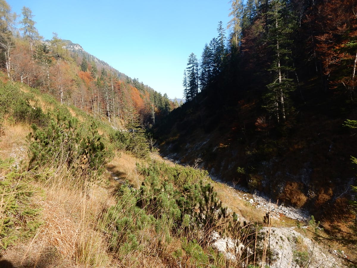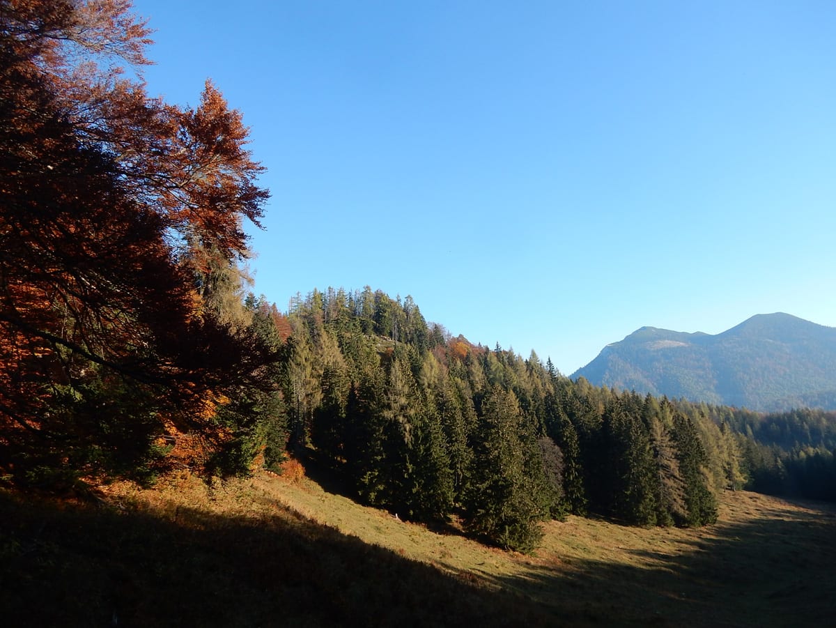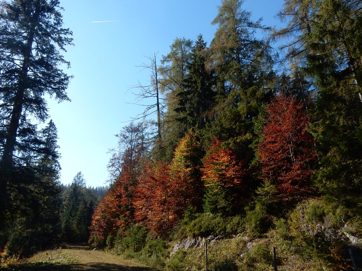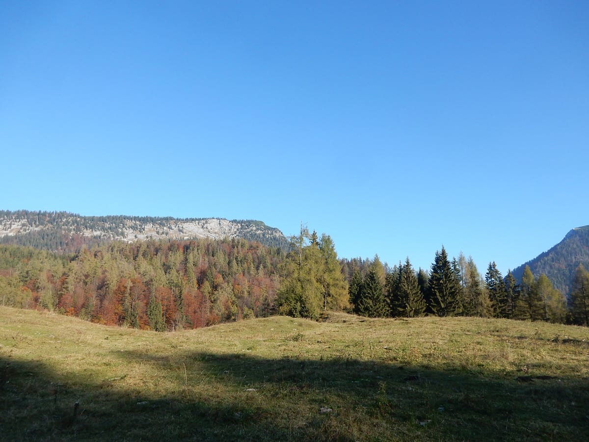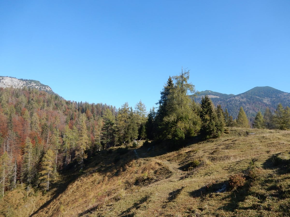 Mit unserem ganzen Hin-und Zurück, Rauf und Runter haben wir schon viel Zeit verbraucht und eine größere Runde über die Weingartalm geht sich jetzt nicht mehr aus (auf der Karte sieht man es einigermaßen – die stimmt wirklich!). Also gemütlich vom Dürreneck zurücjk zum Haslersgattern.