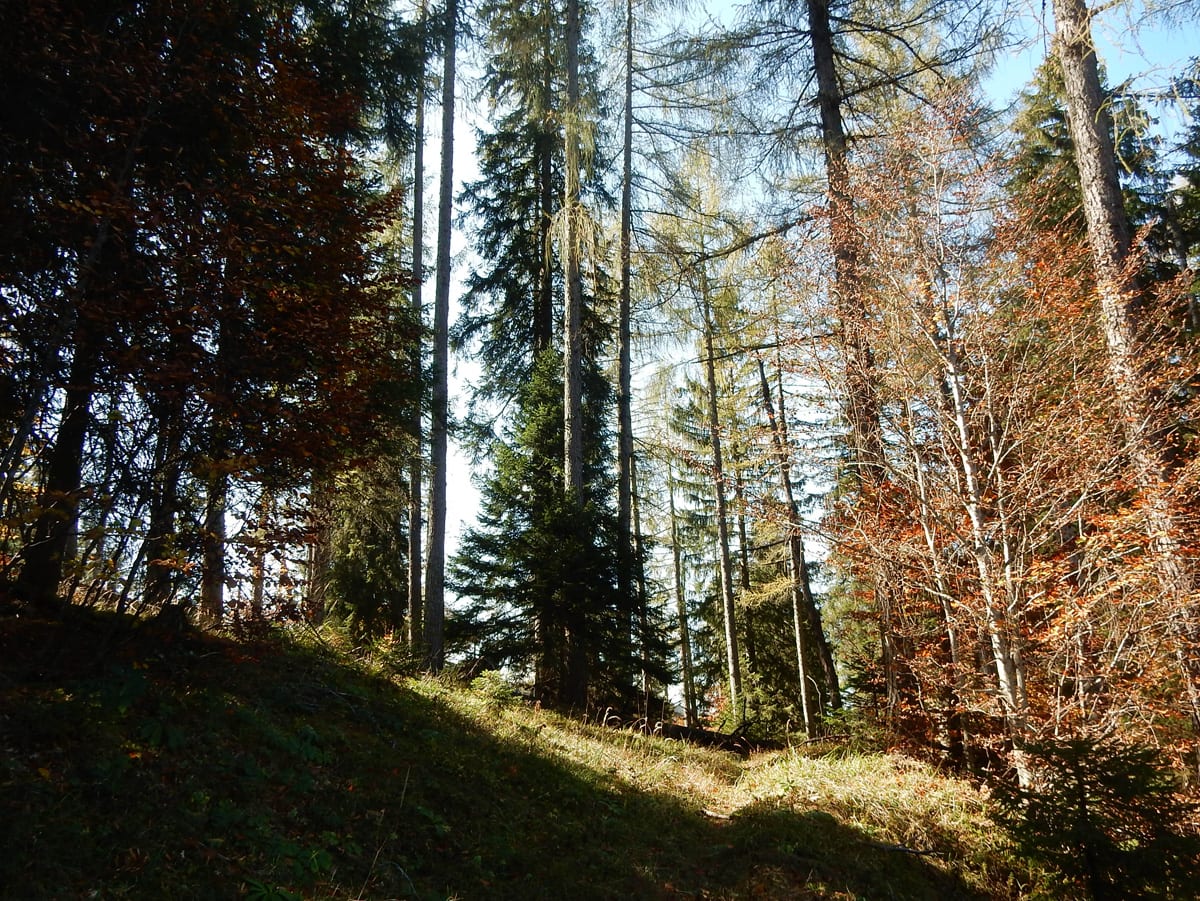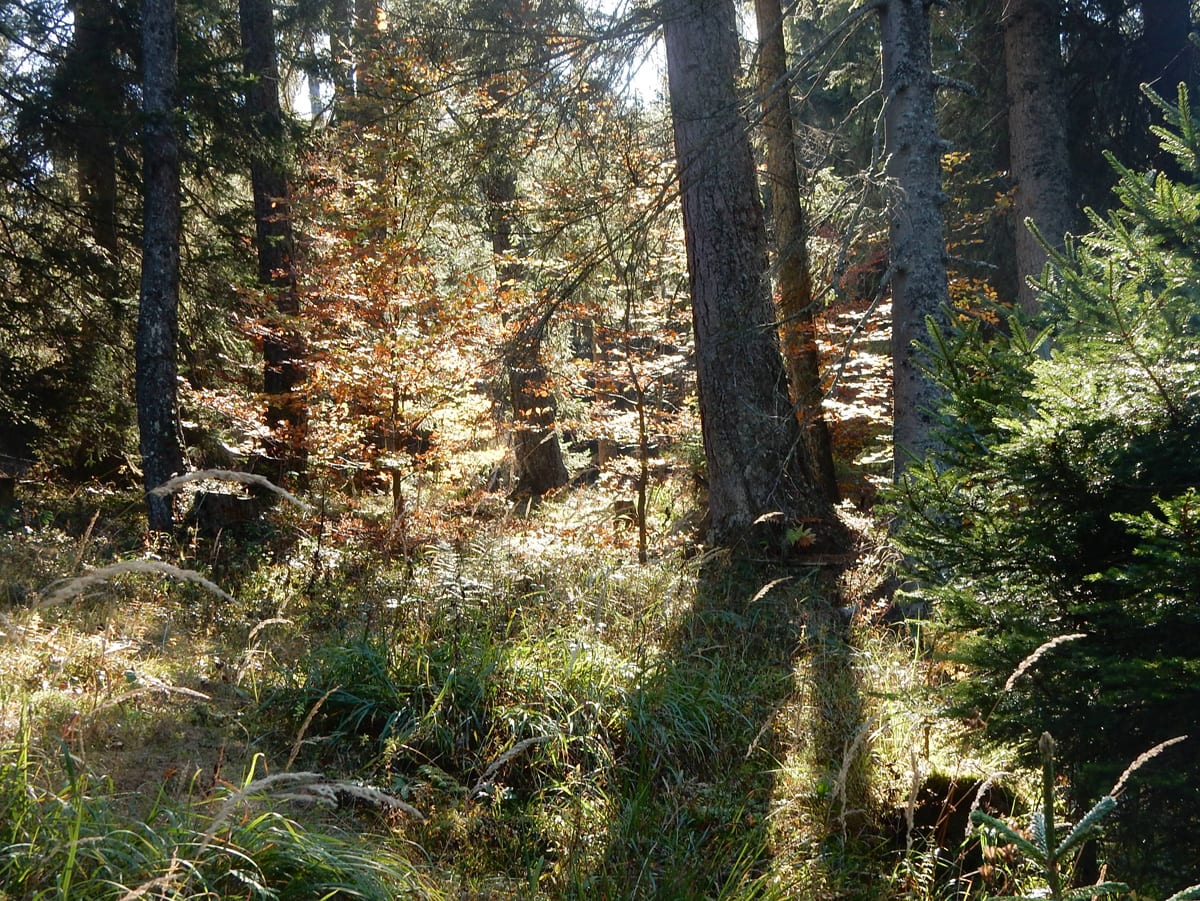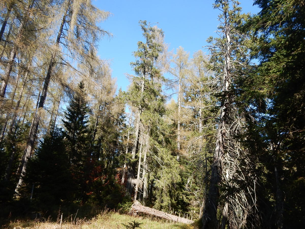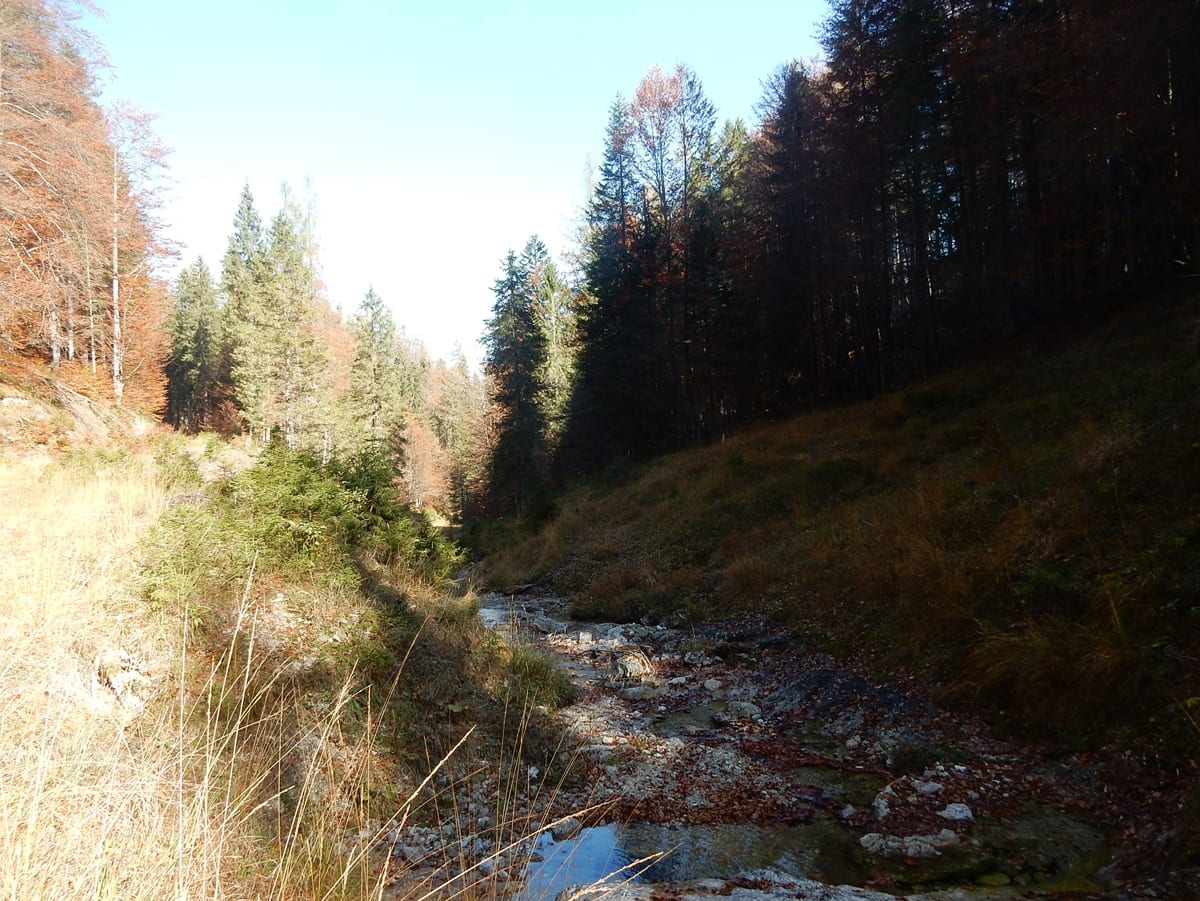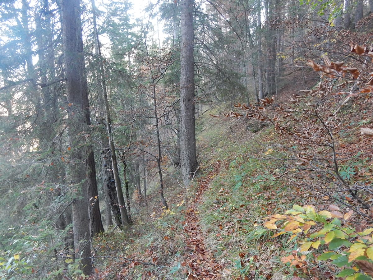 Mit unserem ganzen Hin-und Zurück, Rauf und Runter haben wir schon viel Zeit verbraucht und eine größere Runde über die Weingartalm geht sich jetzt nicht mehr aus (auf der Karte sieht man es einigermaßen – die stimmt wirklich!). Also gemütlich vom Dürreneck zurücjk zum Haslersgattern.