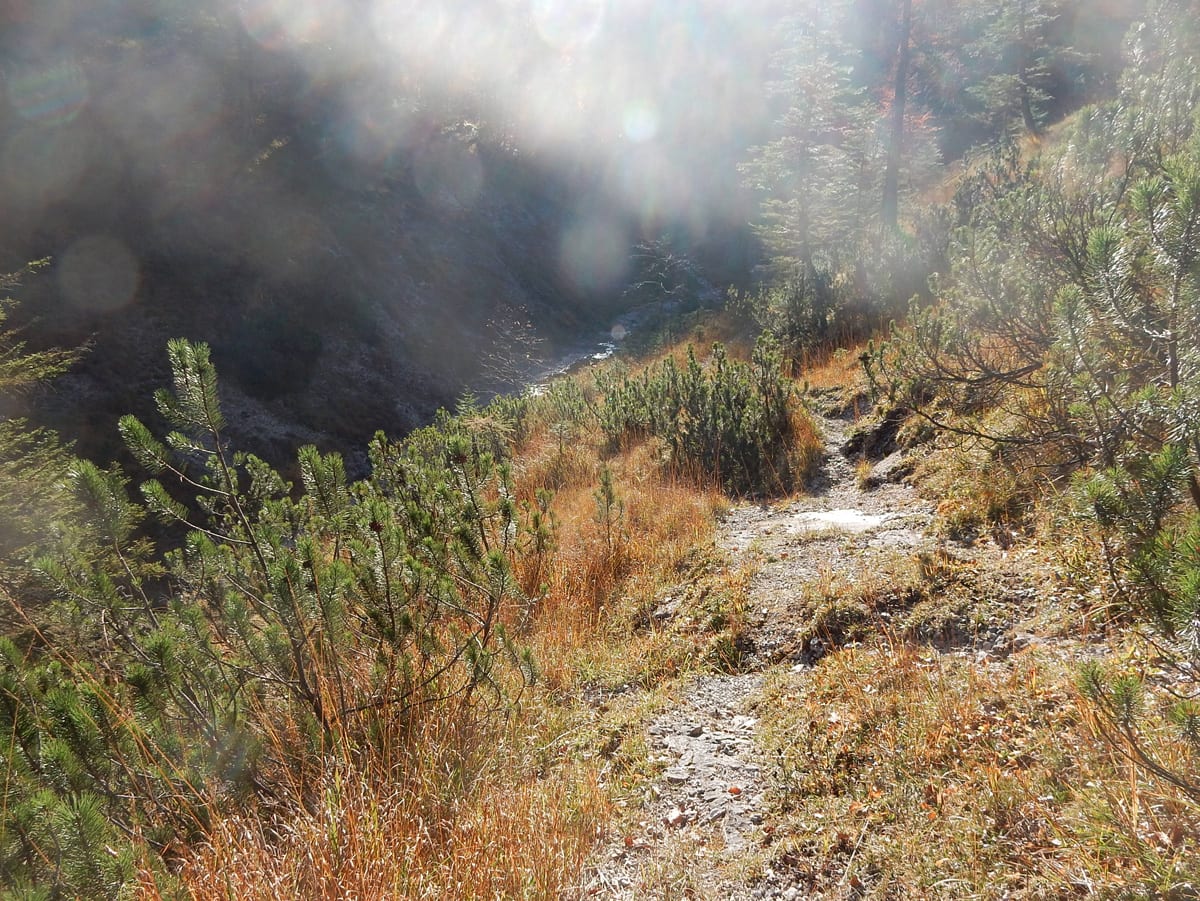 Vom Haslersgatter aus liegen auf dem Weg zur Maierreith noch die Spuren der Kühe, die bis vor ein paar Tagen dort noch auf Somemrfrische waren. Heute ist aber freie Bahn für uns und das nützen wir ungeniert aus.