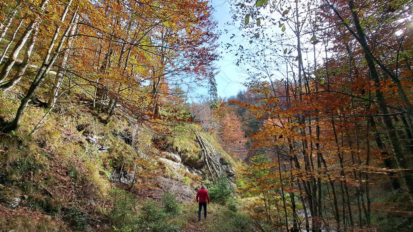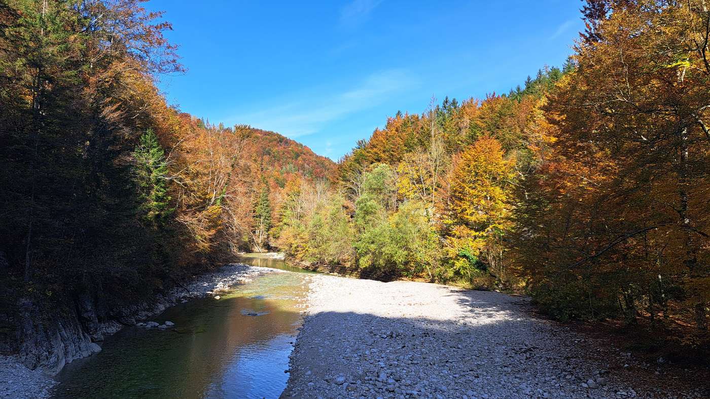 Heute wird es eine Herbstwanderung den Weissenbach entlang bis zur letzten Brücke, das ist für den Anfang schon anstrengend genug.