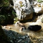 Den Weißenbach entlang bis hinauf zum Schöneck (917m): eine nicht ganz so kurze Strecke, die entweder am Wasser entlang oder meistens im Schatten verläuft. SO halten wir es bis Mittag aus und dann kommt eh wieder das übliche: Chillen am Bach!